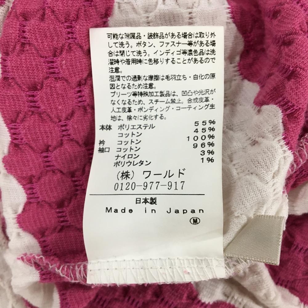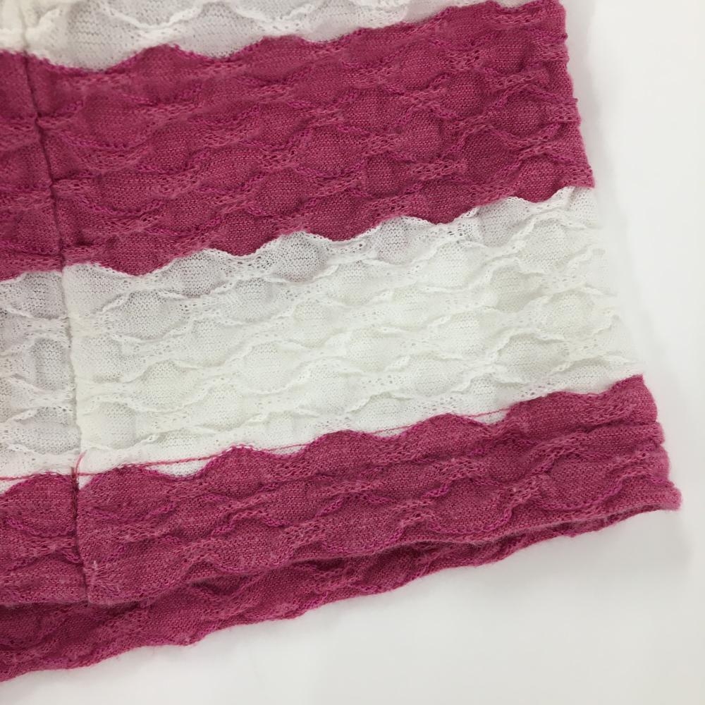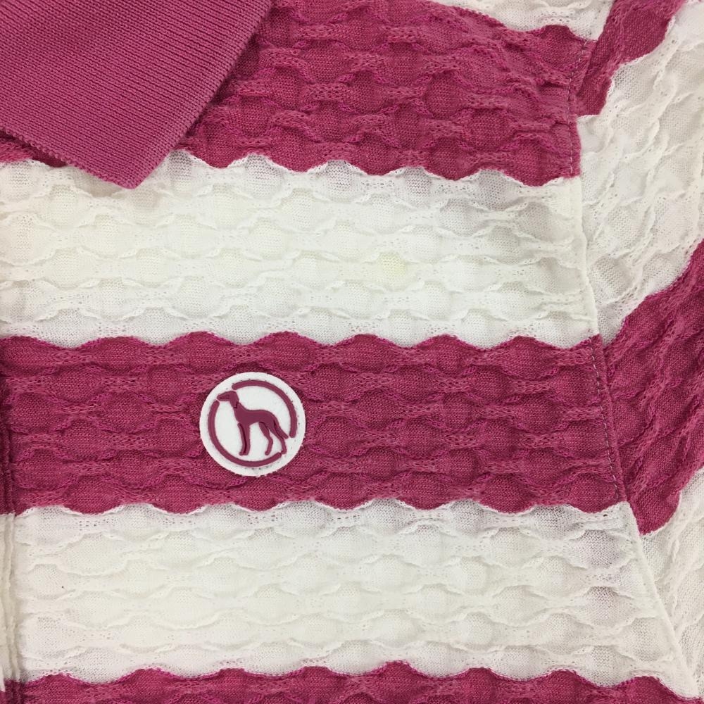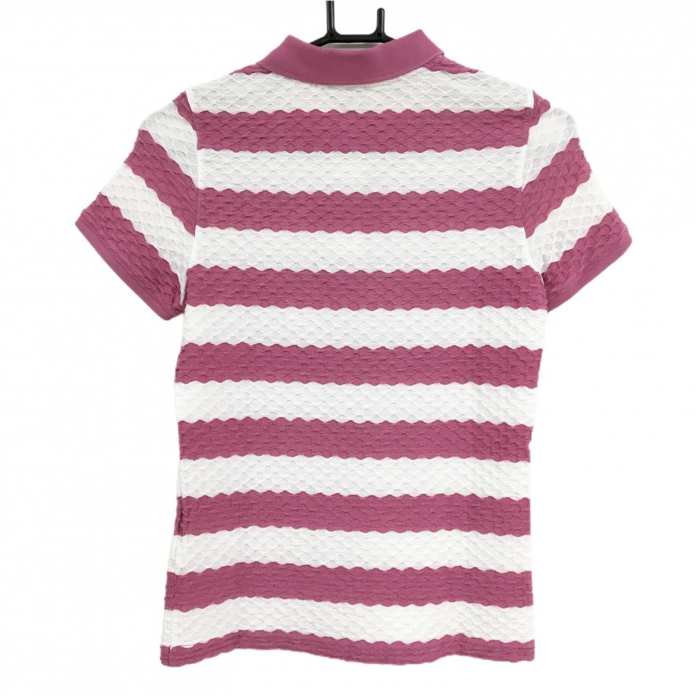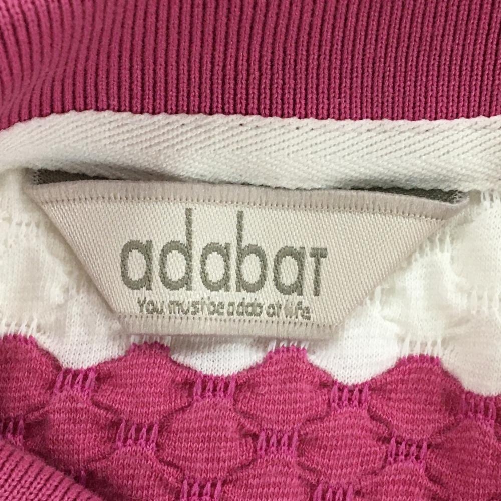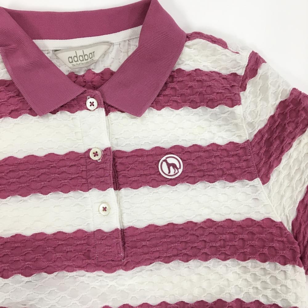 アダバット 半袖ポロシャツ ピンク×白 凸凹生地 ボーダー 胸元ロゴ レディース 36(S) ゴルフウェア adabat
