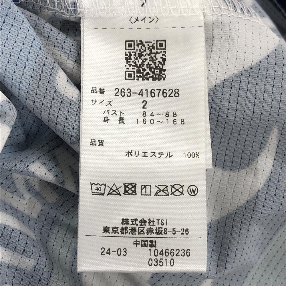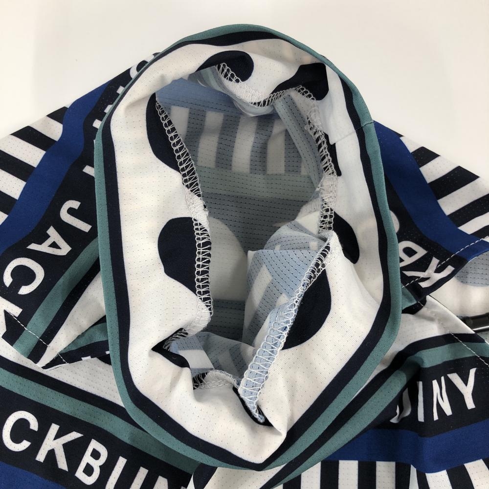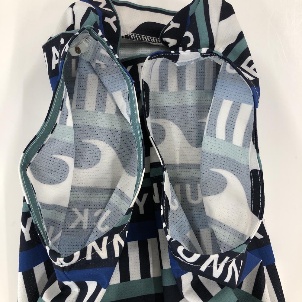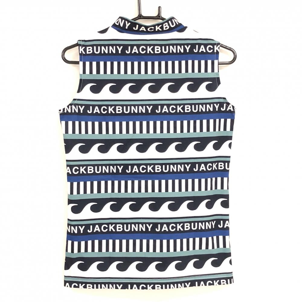 【美品】ジャックバニー ノースリーブハイネックシャツ ネイビー×白×グリーン レディース 2(L) ゴルフウェア 2024年モデル Jack Bunny