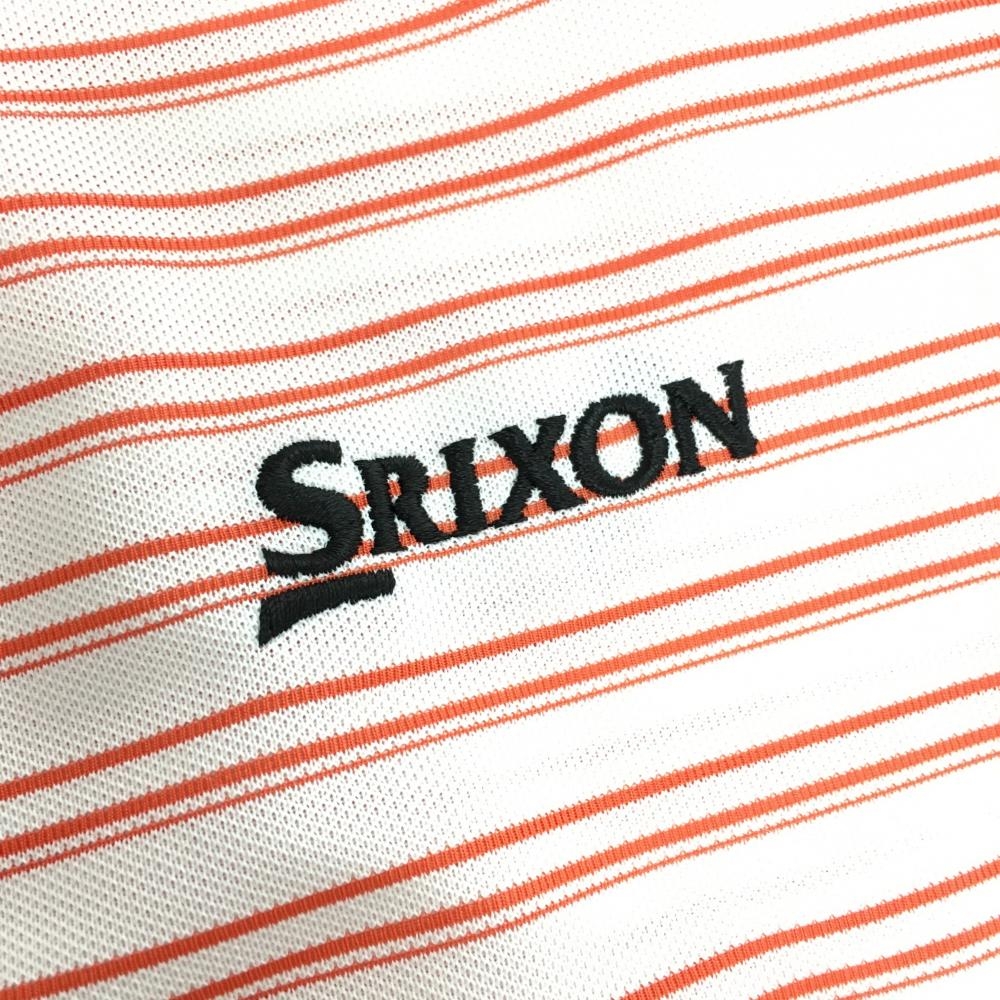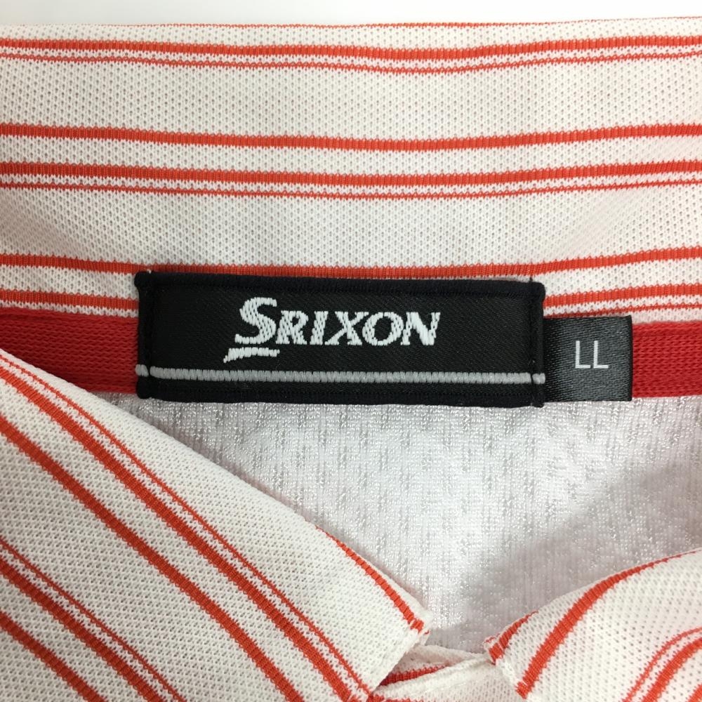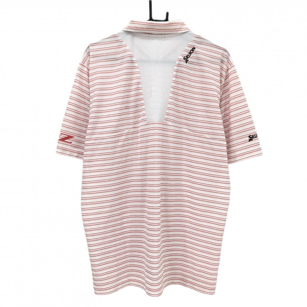 【超美品】スリクソン 半袖ポロシャツ 白×レッド ボーダー ロゴ刺しゅう 一部メッシュ メンズ LL ゴルフウェア SRIXON