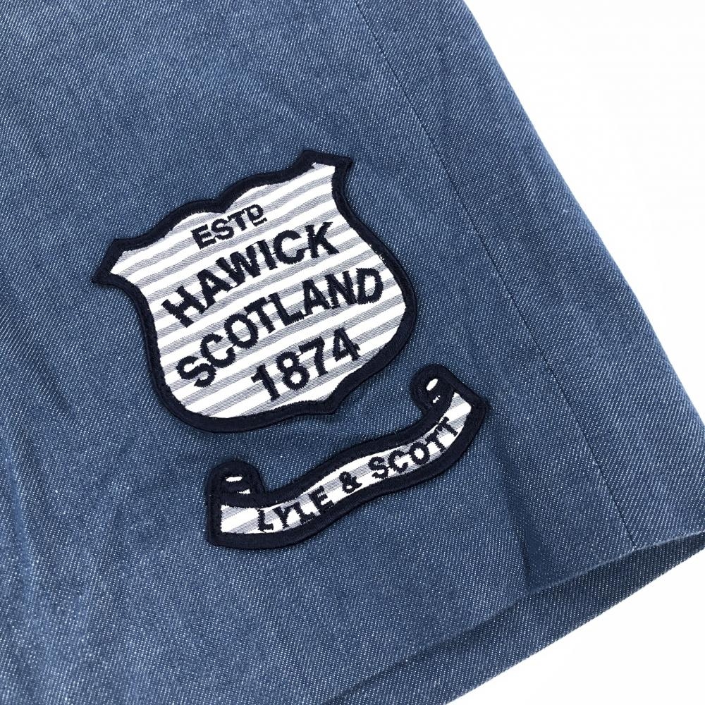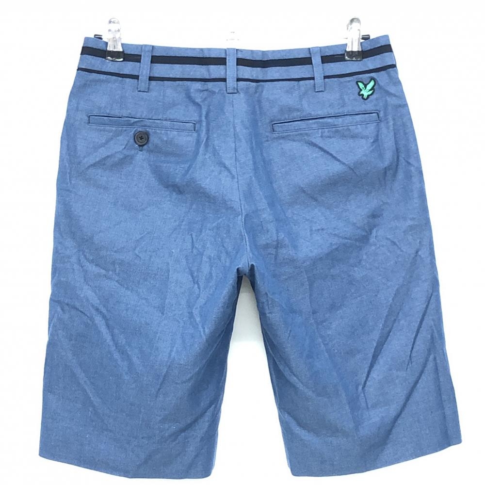 【超美品】ライルアンドスコット ハーフパンツ スモーキーブルー 裾ワッペン メンズ S ゴルフウェア LYLE&SCOTT