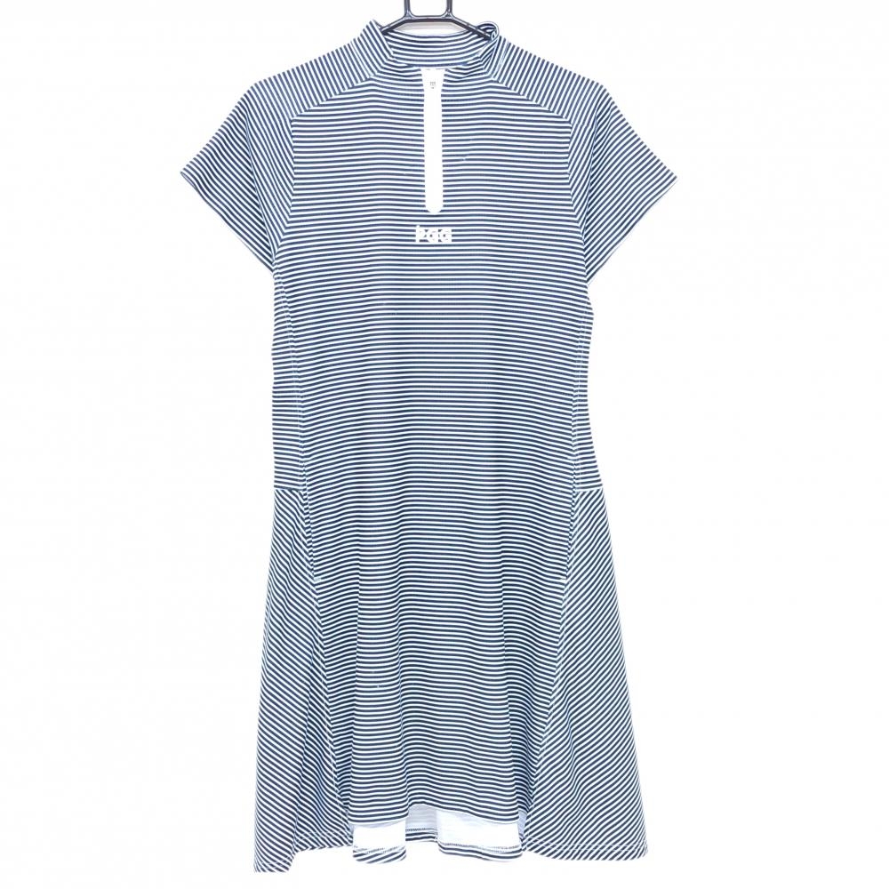 PGGパーリーゲイツ 半袖ハイネックワンピース ネイビー×白 ボーダー ハーフジップ レディース 1(M) ゴルフウェア PEARLY GATES