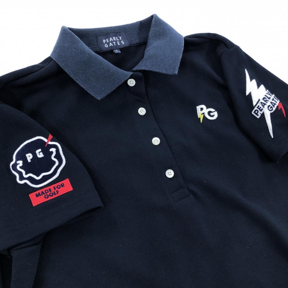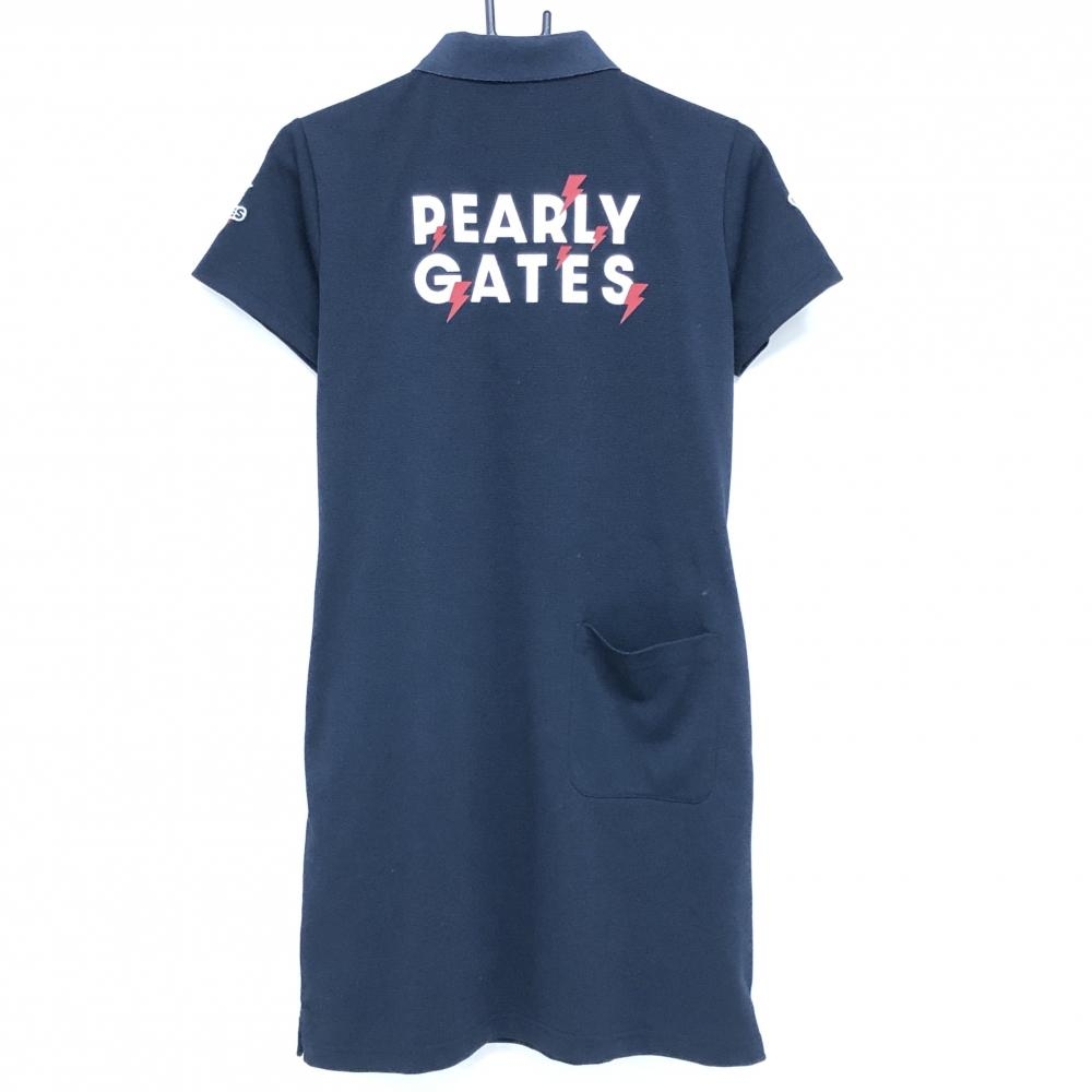 パーリーゲイツ 半袖ポロワンピース ネイビー×白 感電ニコちゃん スマイル レディース 1(M) ゴルフウェア PEARLY GATES