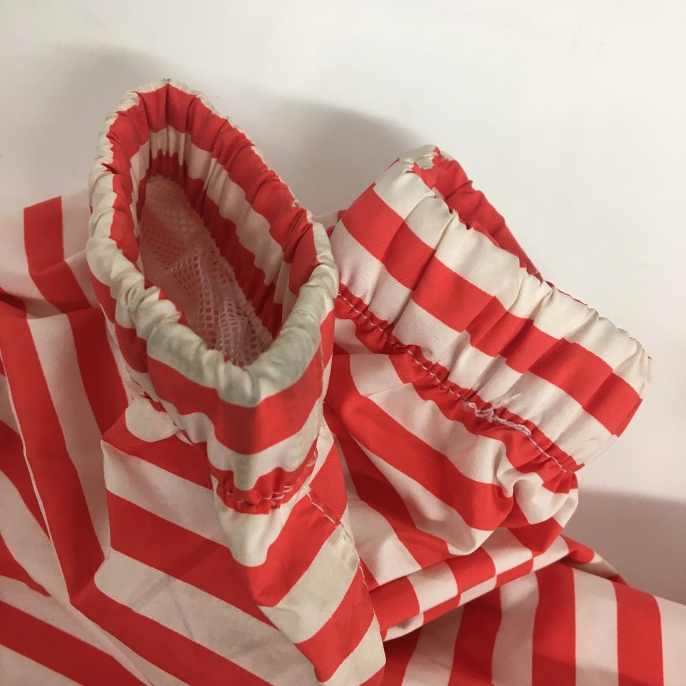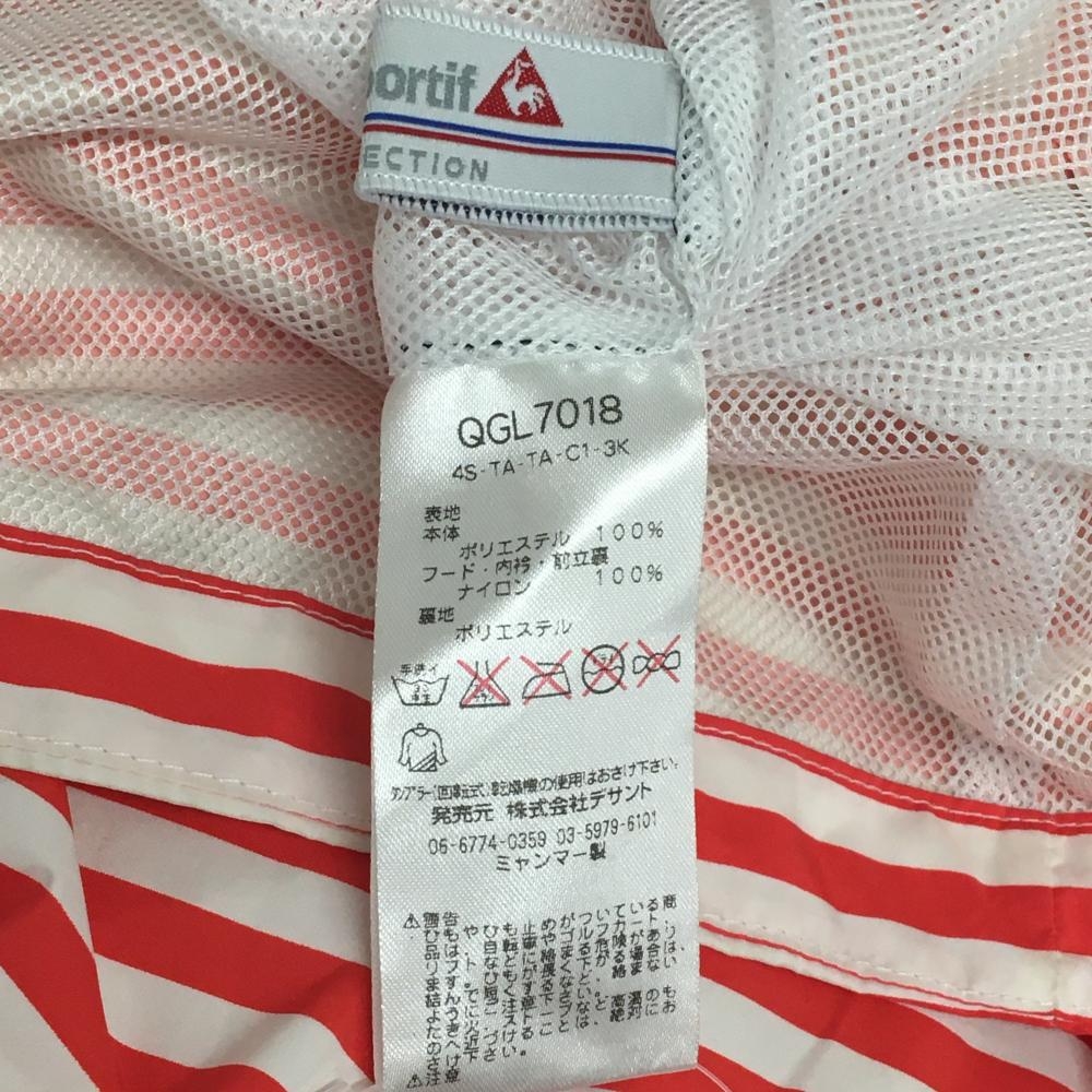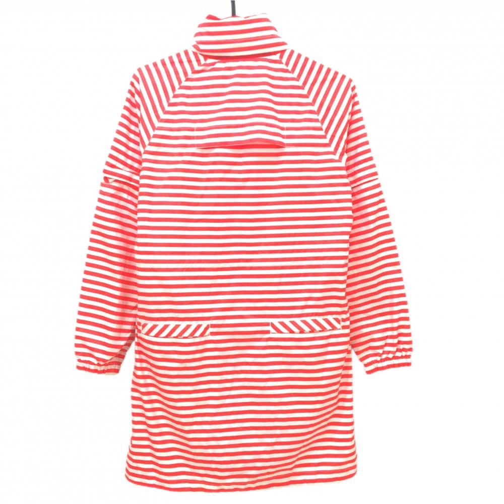 ルコックゴルフ 2WAYレインワンピース レッド×白 ボーダー 袖着脱可 フード収納可 レディース L ゴルフウェア le coq sportif