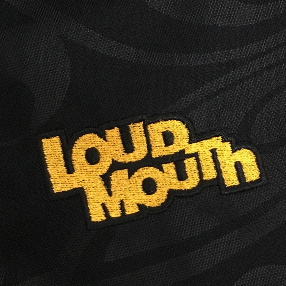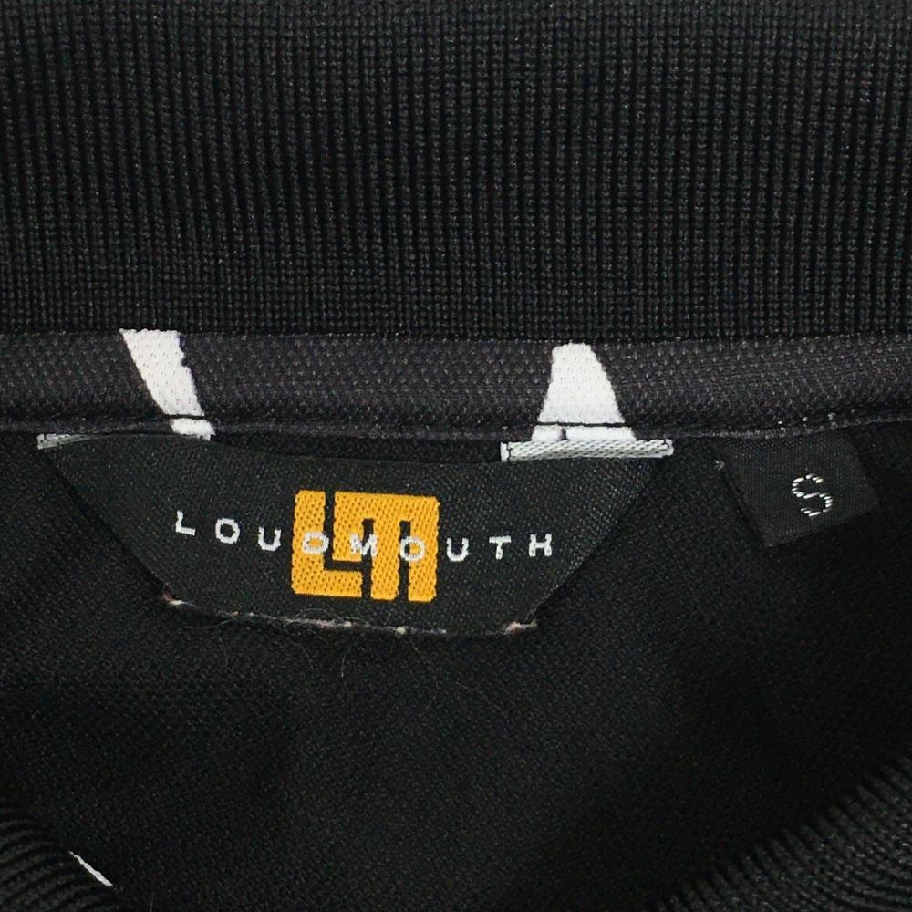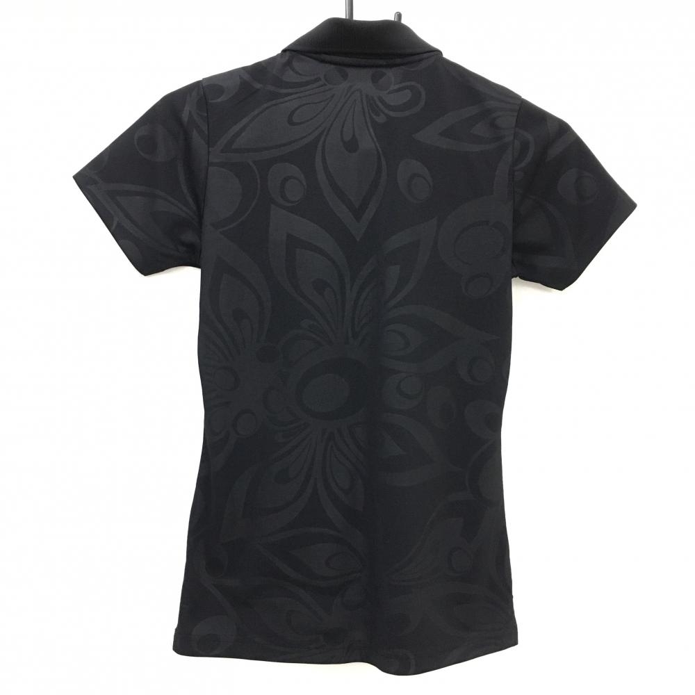 【超美品】ラウドマウス 半袖ポロシャツ 黒×オレンジイエロー 総柄 シャガデリック ロゴ刺しゅう レディース S ゴルフウェア LOUDMOUTH