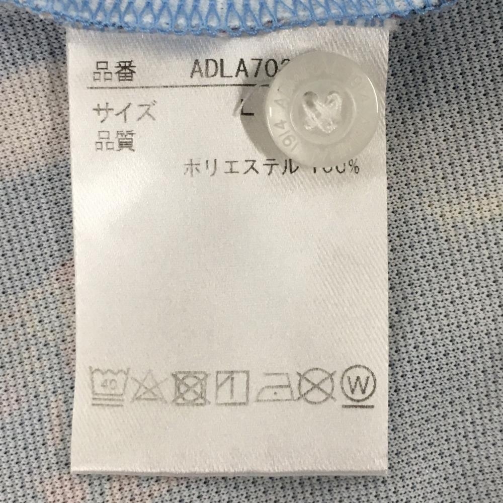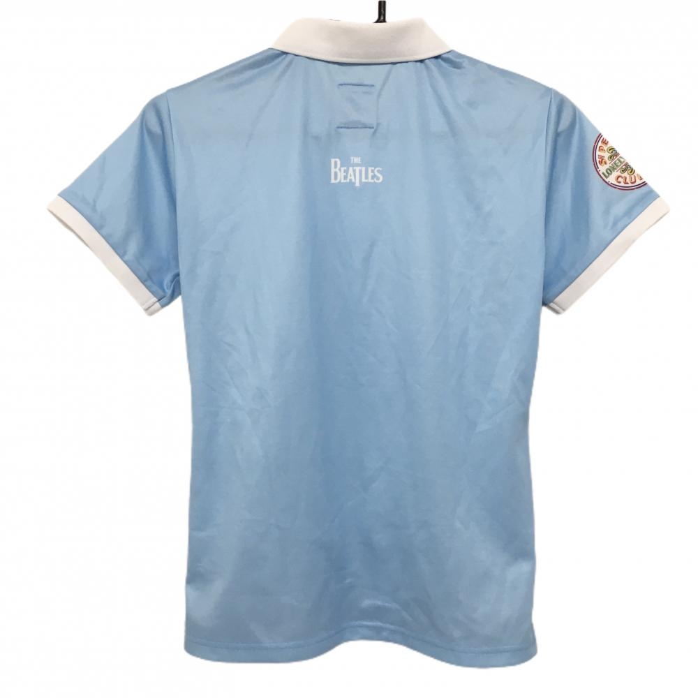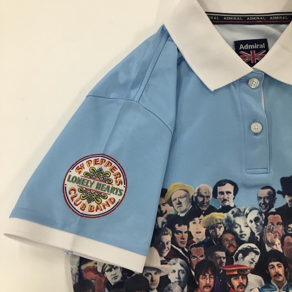 【美品】アドミラル 半袖ポロシャツ ライトブルー×マルチカラー フロントプリント ビートルズ レディース L ゴルフウェア Admiral
