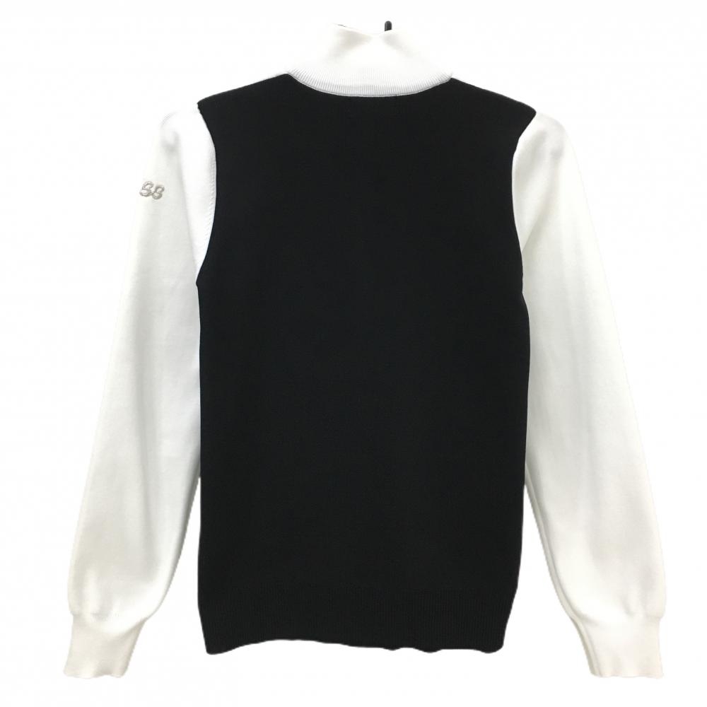 【超美品】キスオンザグリーン ハイネックセーター 白×黒 ハーフジップ レディース 2(M) ゴルフウェア kiss on the green