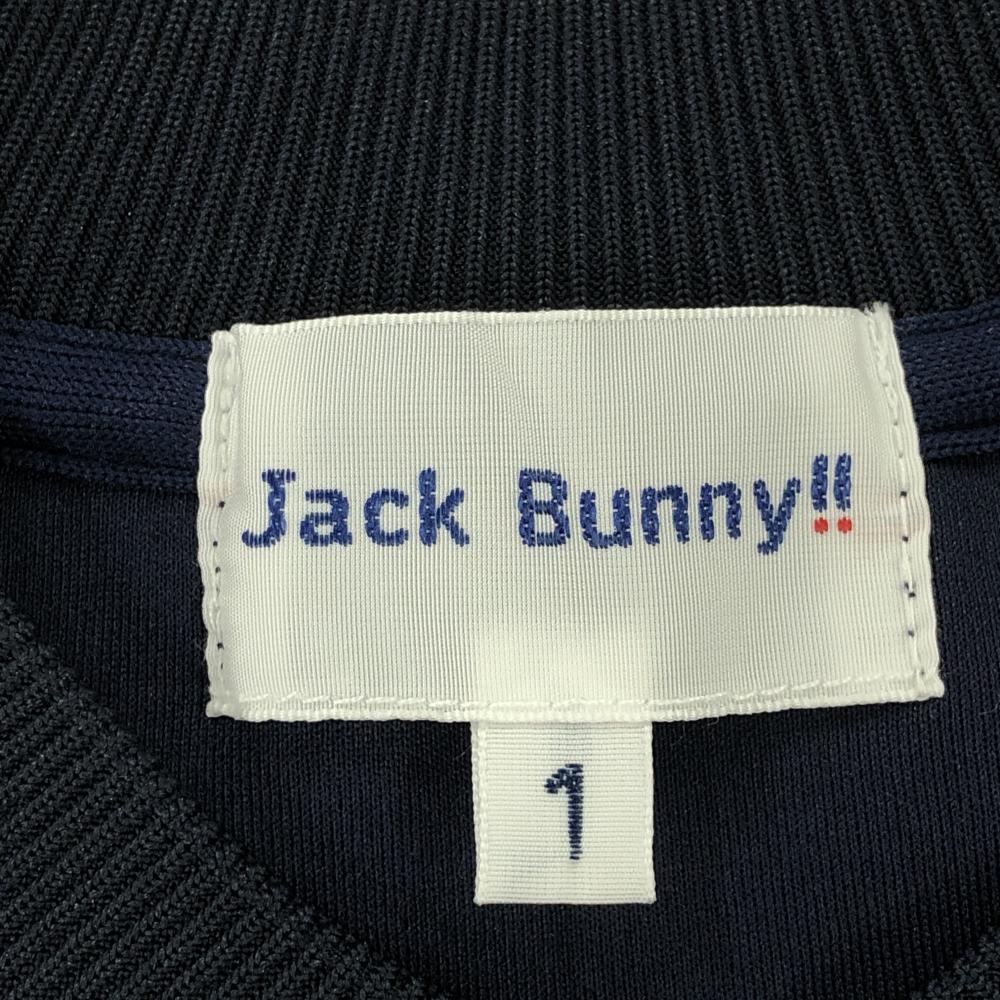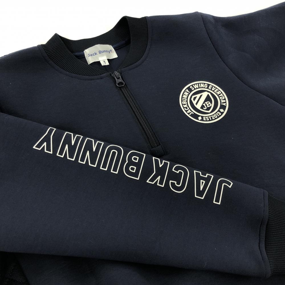 【超美品】ジャックバニー トレーナー ネイビー ロゴ白 ハーフジップ サイド切替 レディース 1(M) ゴルフウェア Jack Bunny