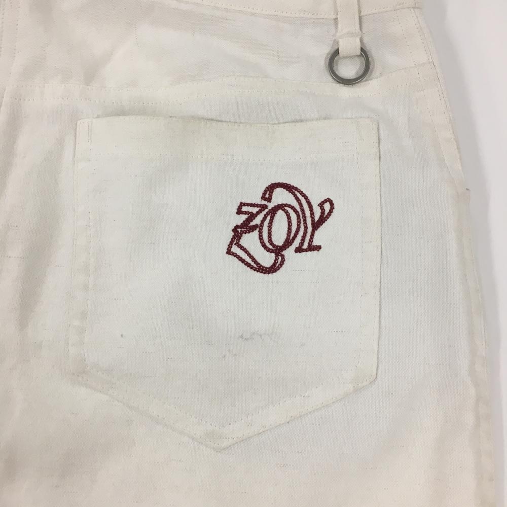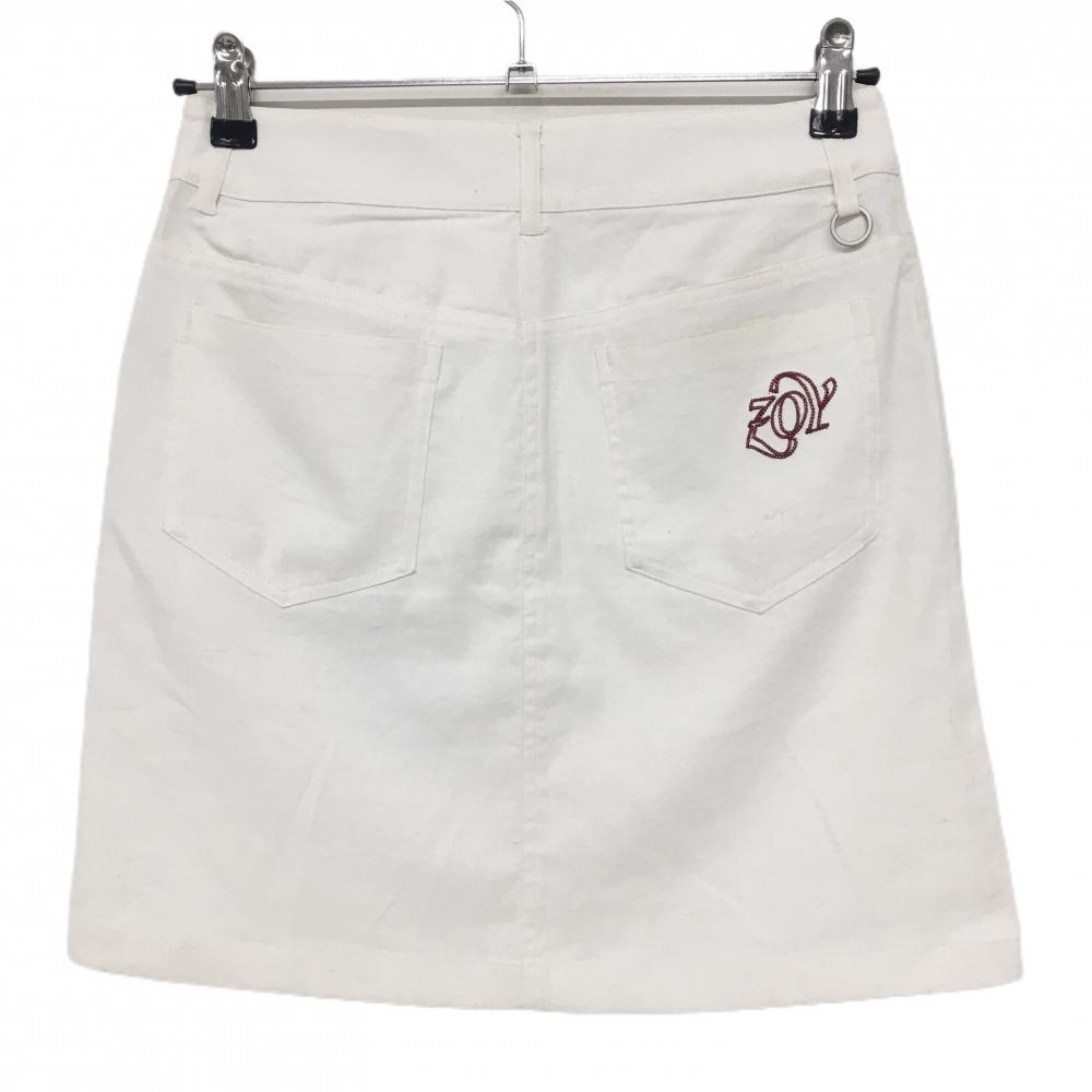 ゾーイ スカート 白 フロントハワイアン刺しゅう インナーパンツ付 麻混 レディース 36(S) ゴルフウェア ZOY