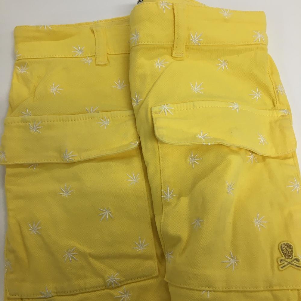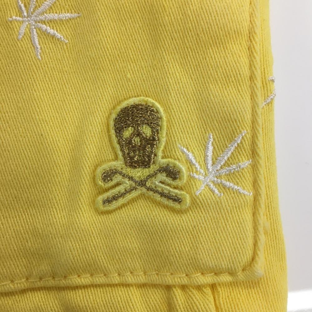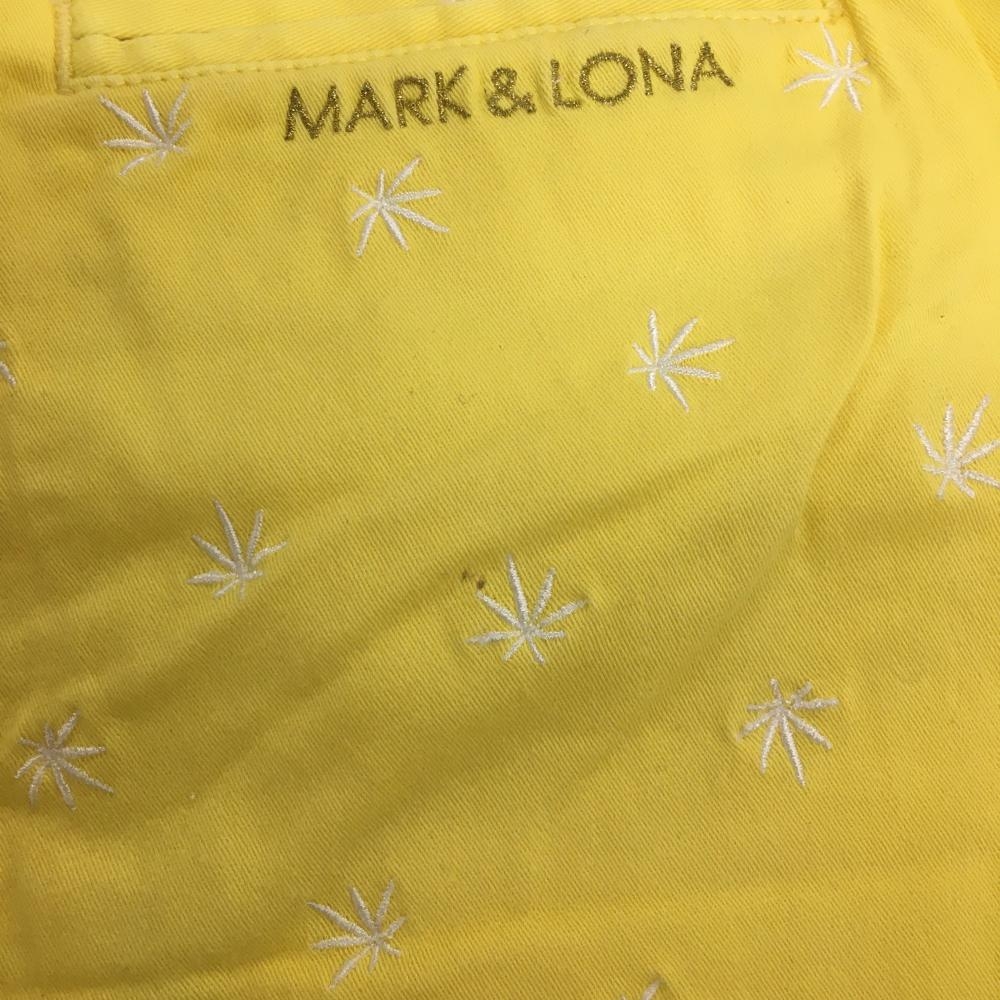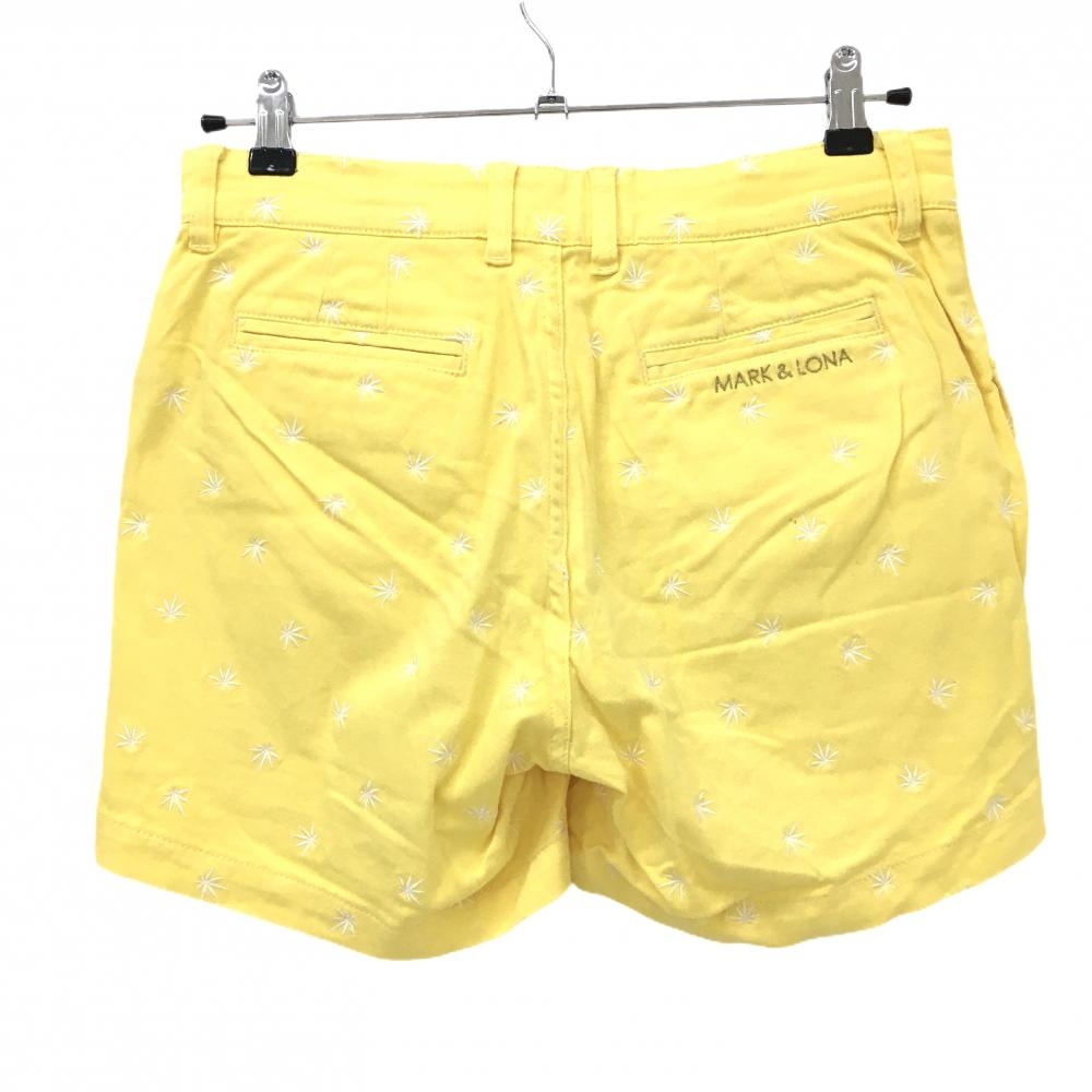 マークアンドロナ ショートパンツ イエロー×白 リーフ柄 ストレッチ レディース M ゴルフウェア MARK&LONA