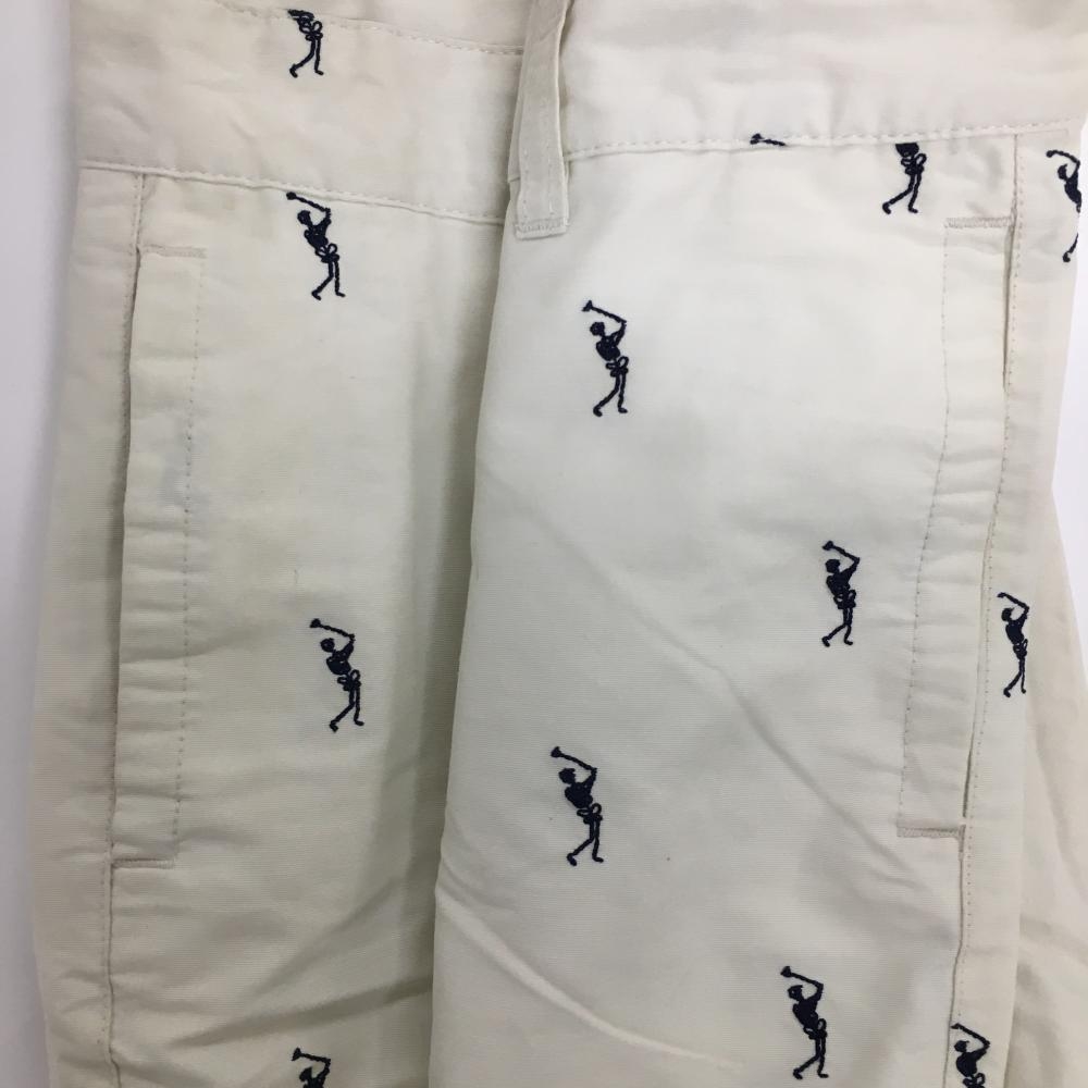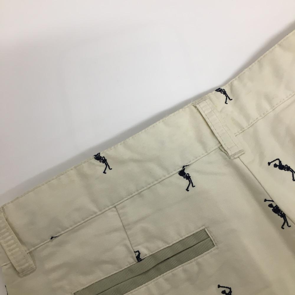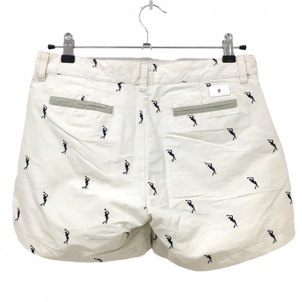 マークアンドロナ ショートパンツ 白×ネイビー スカルゴルファー総柄 メッシュ裏地 レディース M ゴルフウェア MARK&LONA