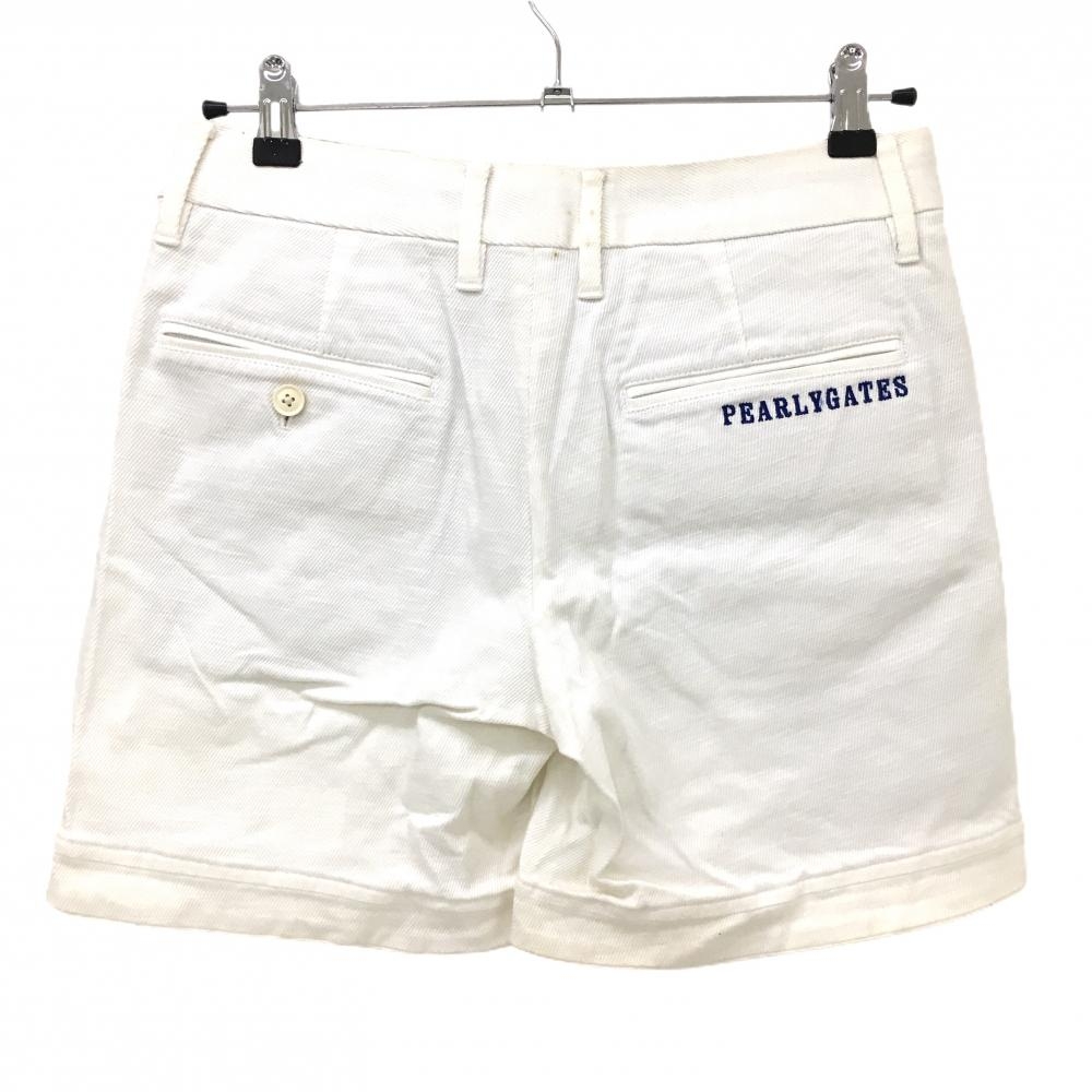 パーリーゲイツ ショートパンツ 白 斜めストライプ織生地 ストレッチ レディース 1(M) ゴルフウェア PEARLY GATES