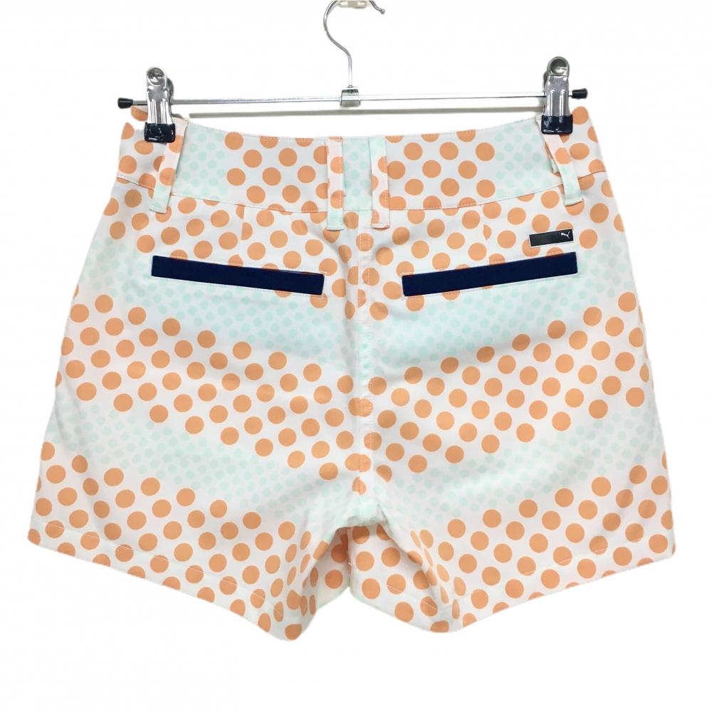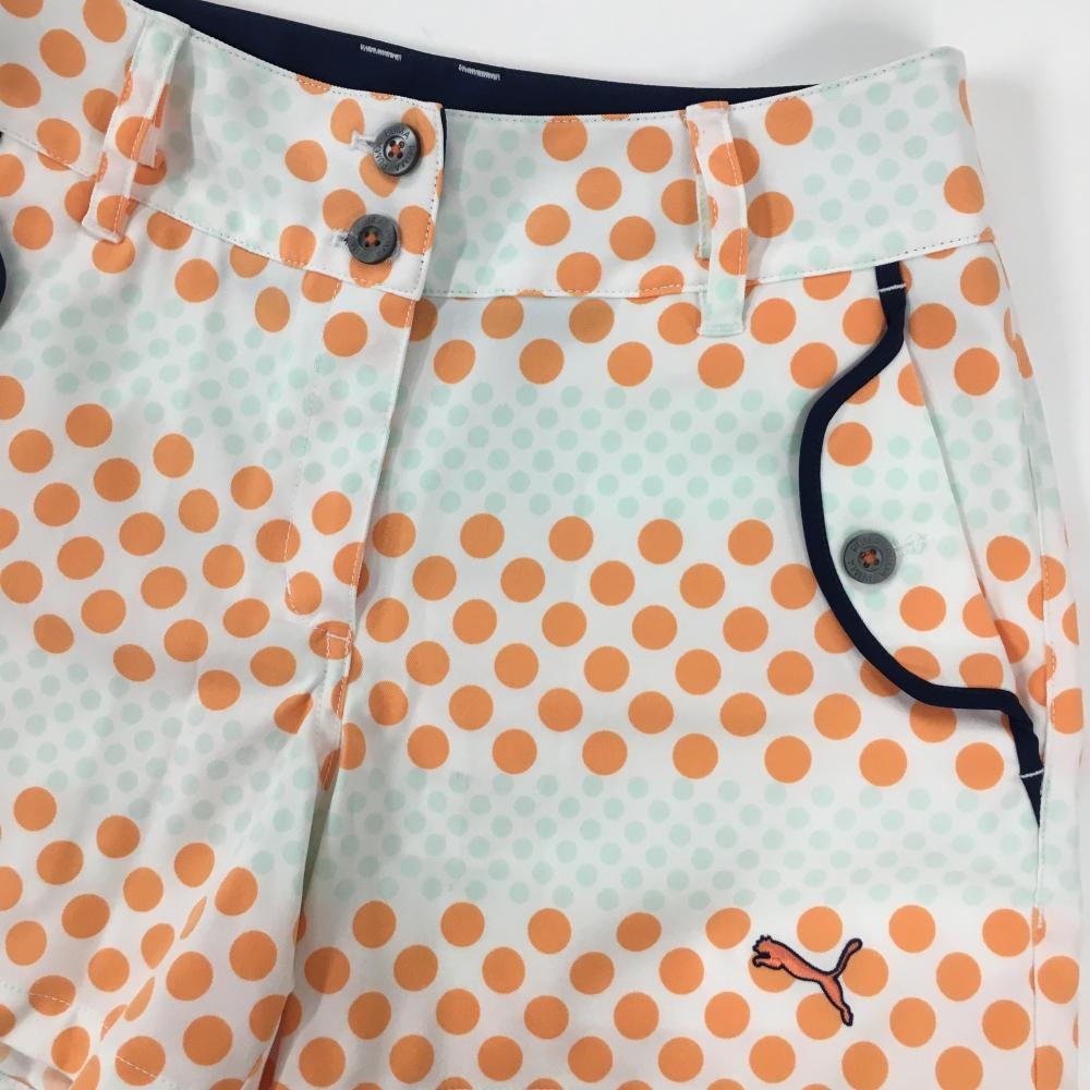 【超美品】プーマ ショートパンツ 白×オレンジ ドット柄 ロゴ刺しゅう レディース S ゴルフウェア PUMA