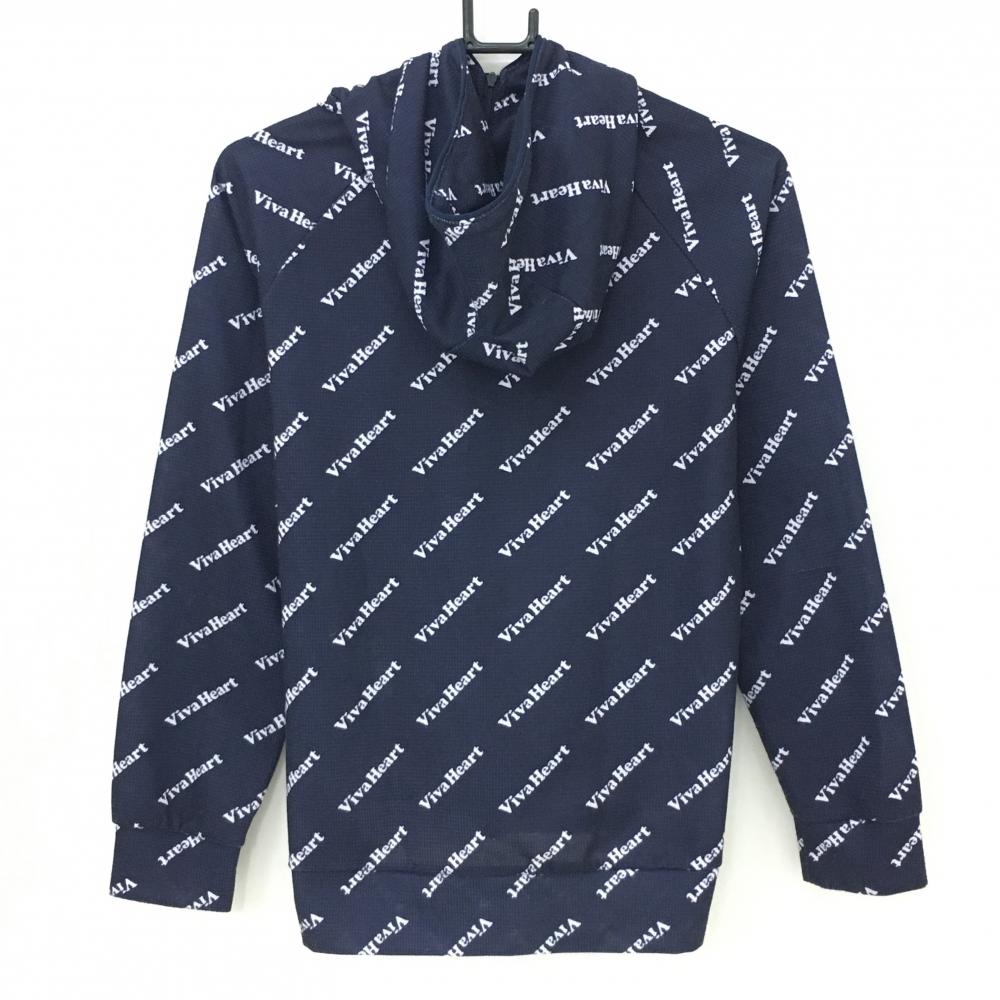 ビバハート ジップパーカー ネイビー×白 ロゴ総柄 ブルゾン レディース 40(M) ゴルフウェア VIVA HEART
