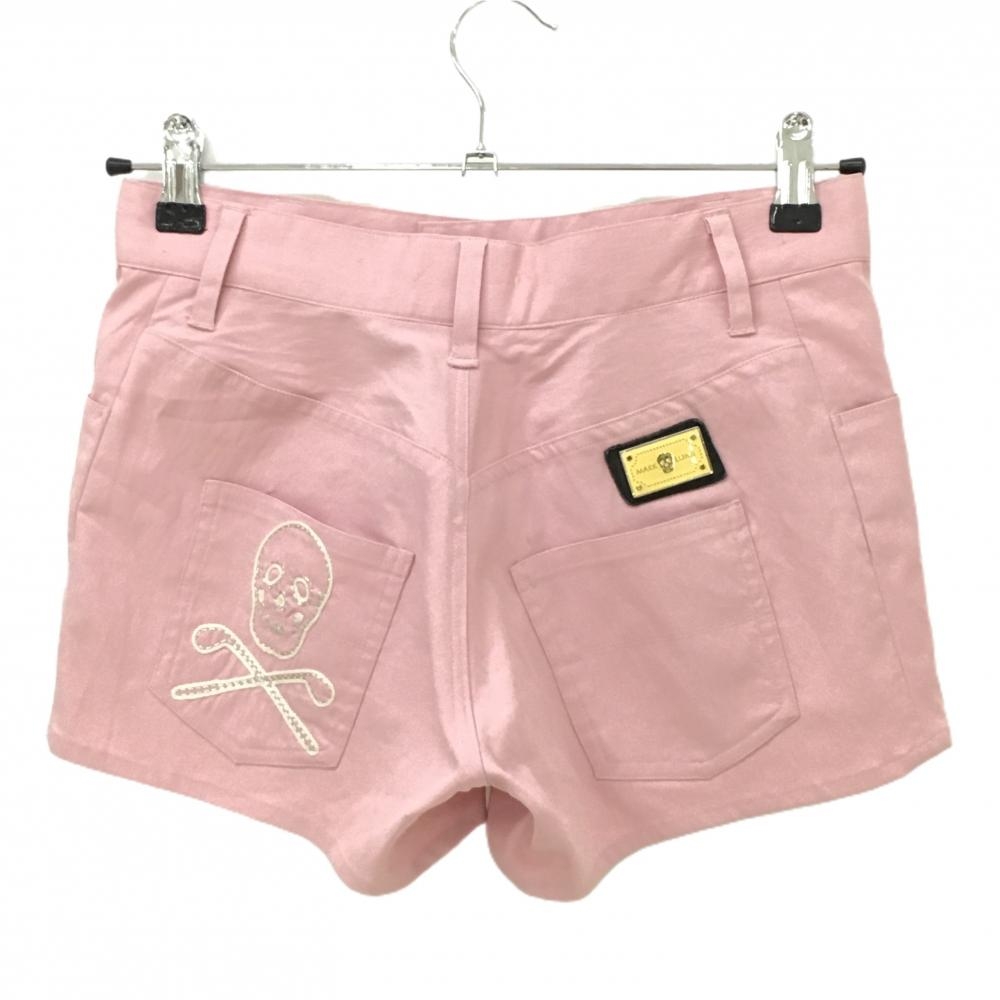 【美品】マークアンドロナ ショートパンツ ライトピンク ストレッチ スカル レディース M ゴルフウェア MARK&LONA