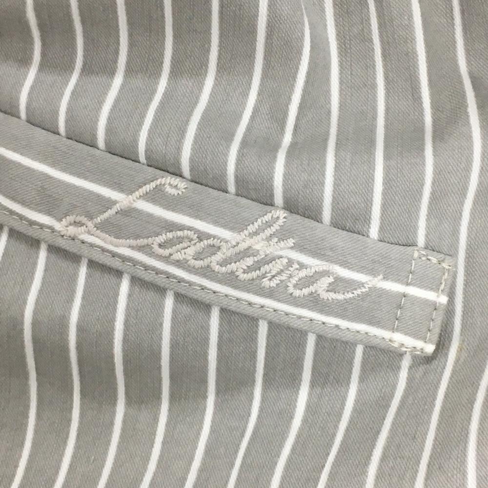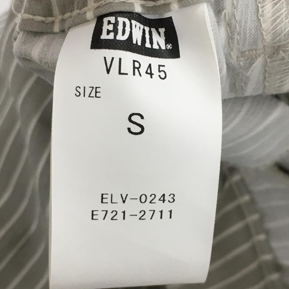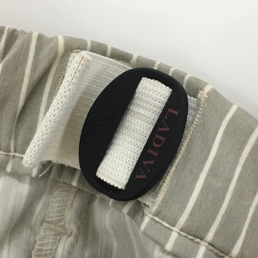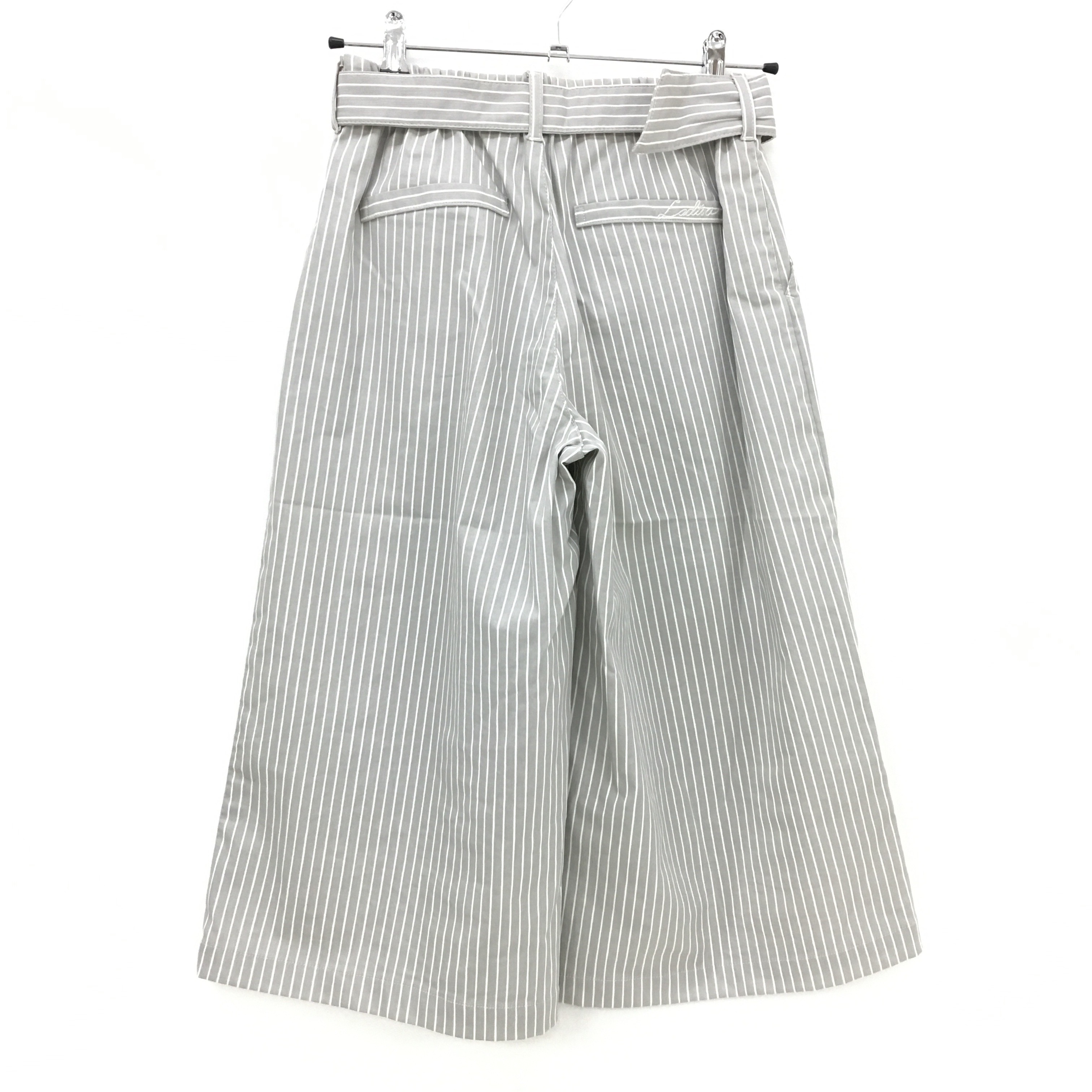 【美品】エドウィン 半端丈パンツ グレー×白 ストライプ ストレッチ ウエストゴム 共布ベルト付 レディース S ゴルフウェア EDWIN GOLF