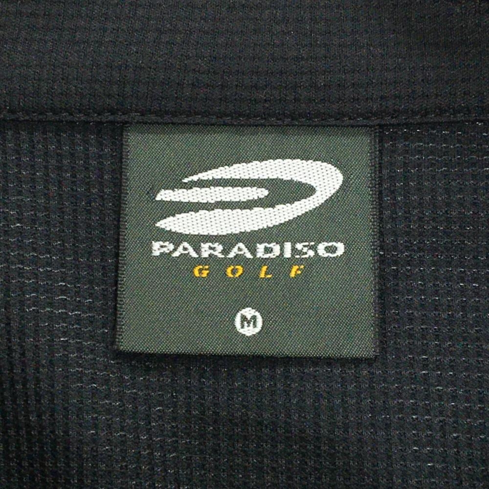 【超美品】パラディーゾ 半袖ハイネックシャツ 黒×グレー 胸元切替ロゴ ハーフジップ メンズ M ゴルフウェア Paradiso