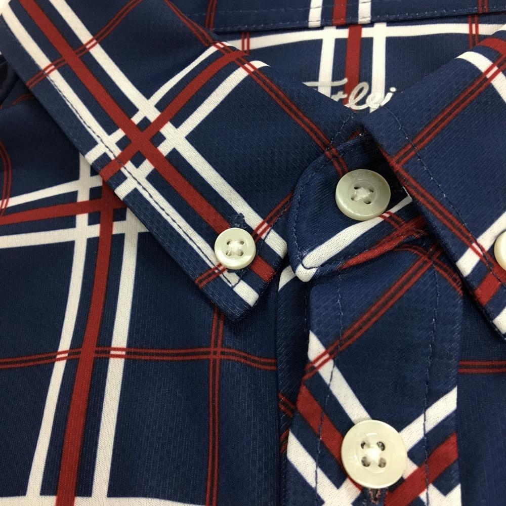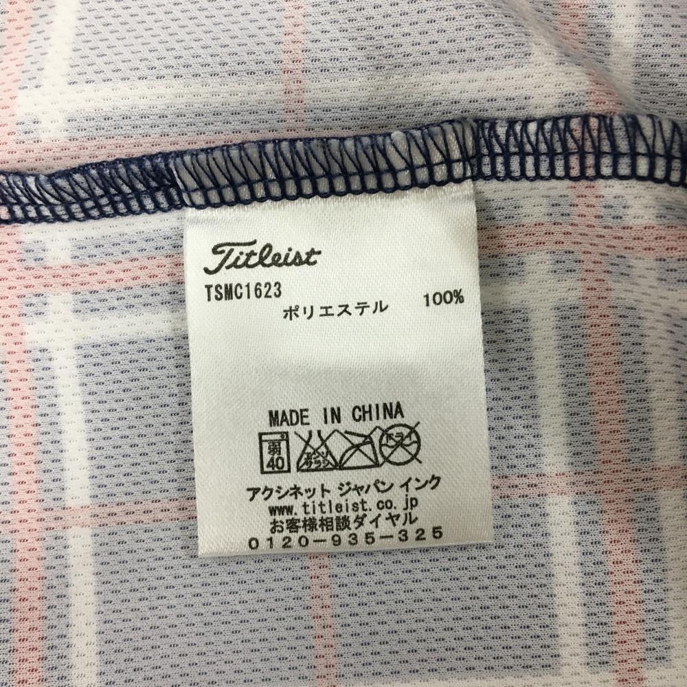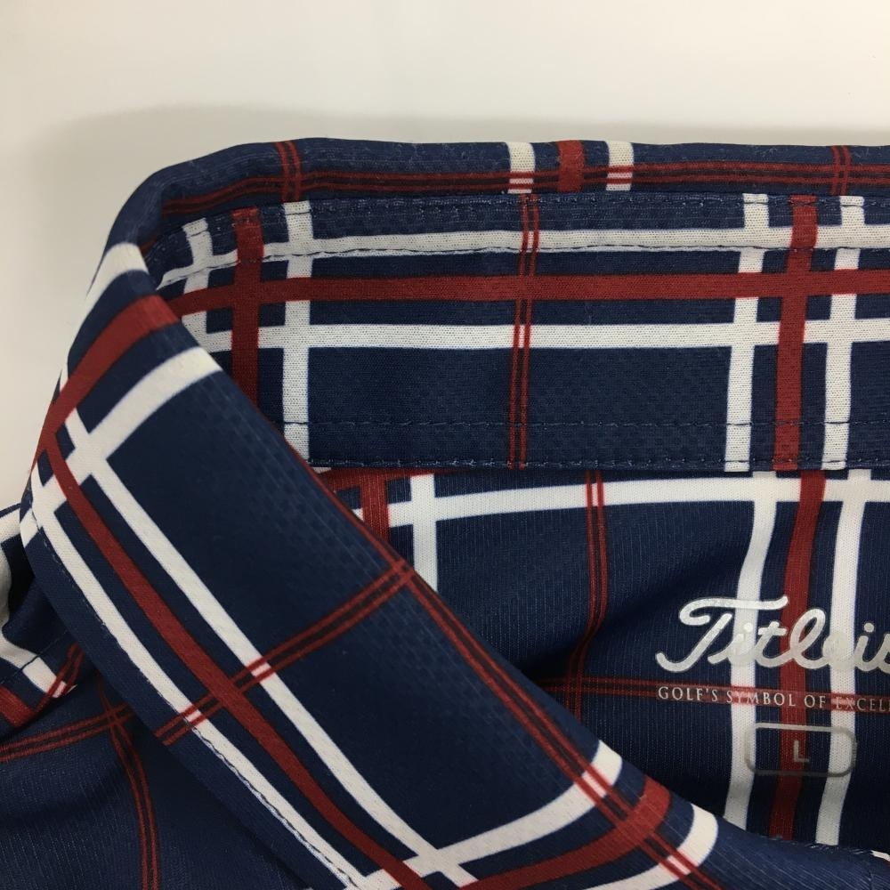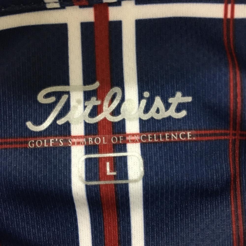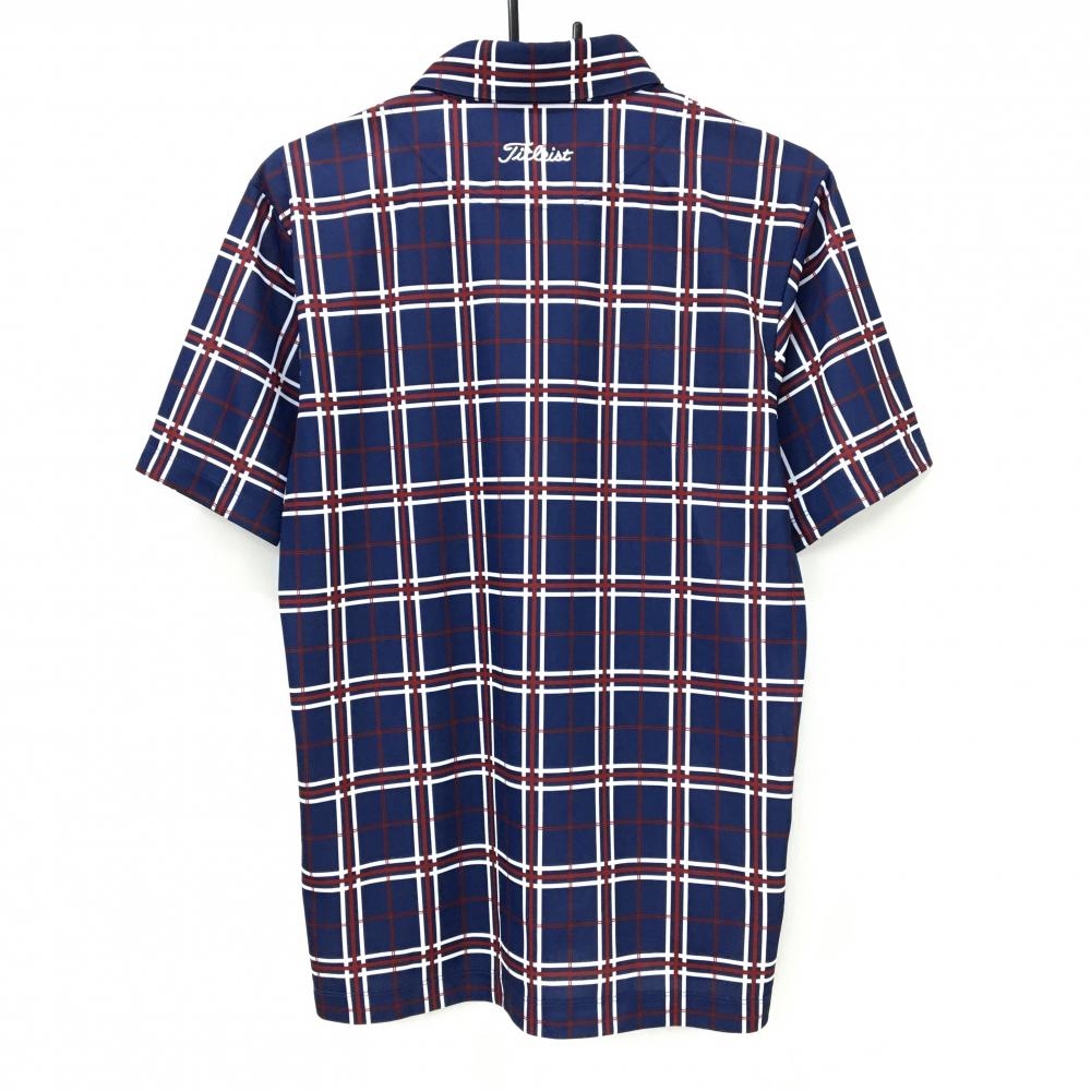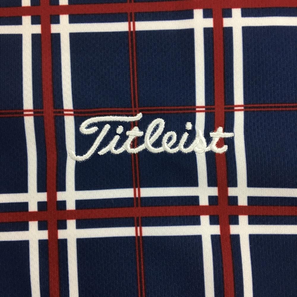 【美品】タイトリスト 半袖ポロシャツ ネイビー×白 チェック柄 ロゴ刺しゅう メンズ L ゴルフウェア TITLEIST