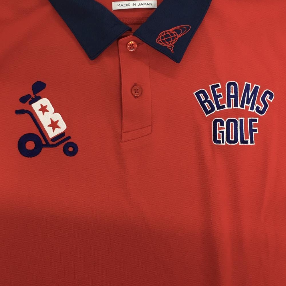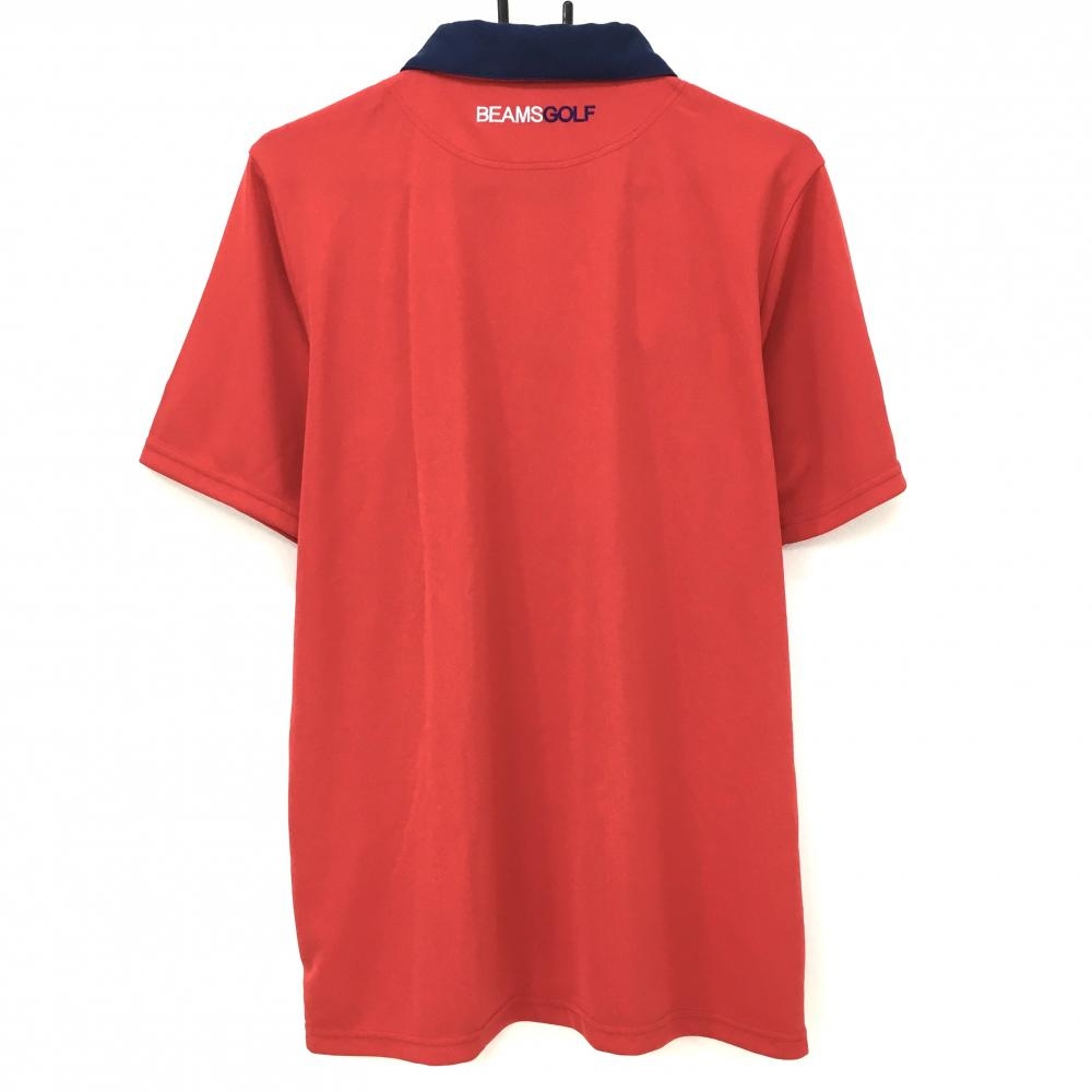 【超美品】ビームスゴルフ 半袖ポロシャツ レッド×ネイビー ロゴ刺しゅう メンズ L ゴルフウェア BEAMS GOLF