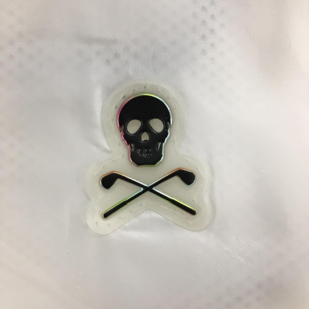 【美品】マークアンドロナ ナイロンパーカー 白 迷彩地模様 カモフラ 裏メッシュ 薄手 スカル メンズ 44(S) ゴルフウェア MARK&LONA