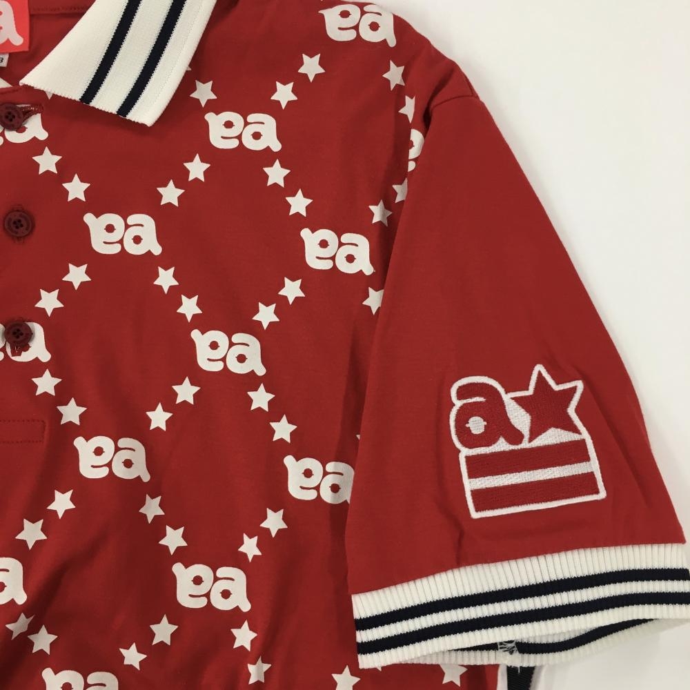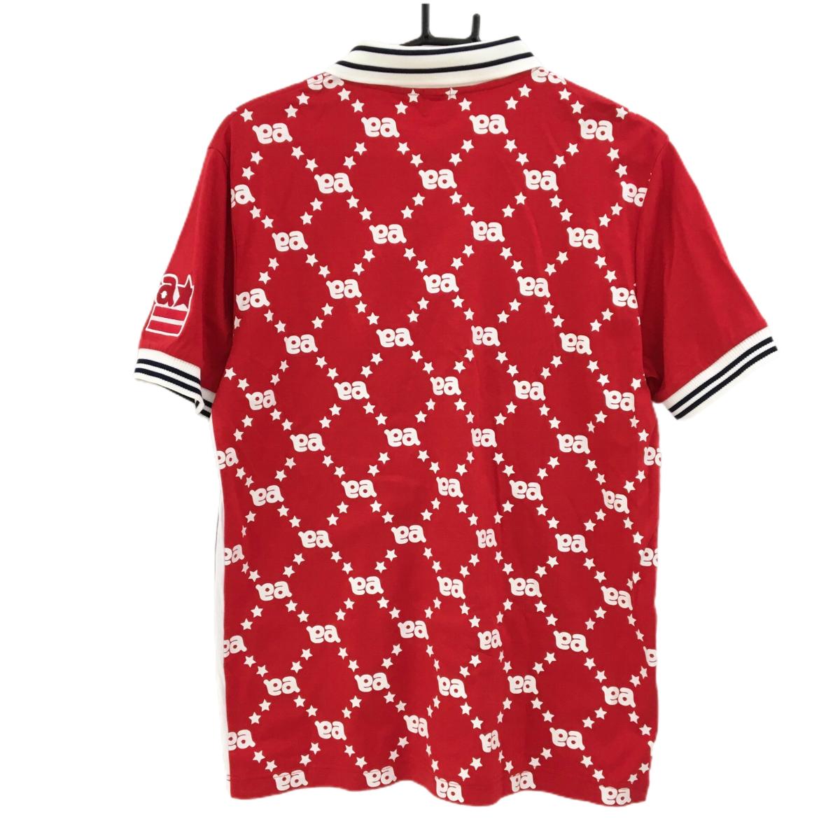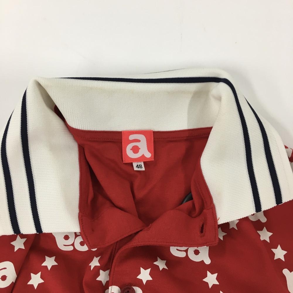 【美品】アルチビオ 半袖ポロシャツ レッド×白 身頃ロゴ・星総柄 メンズ 48(L) ゴルフウェア archivio