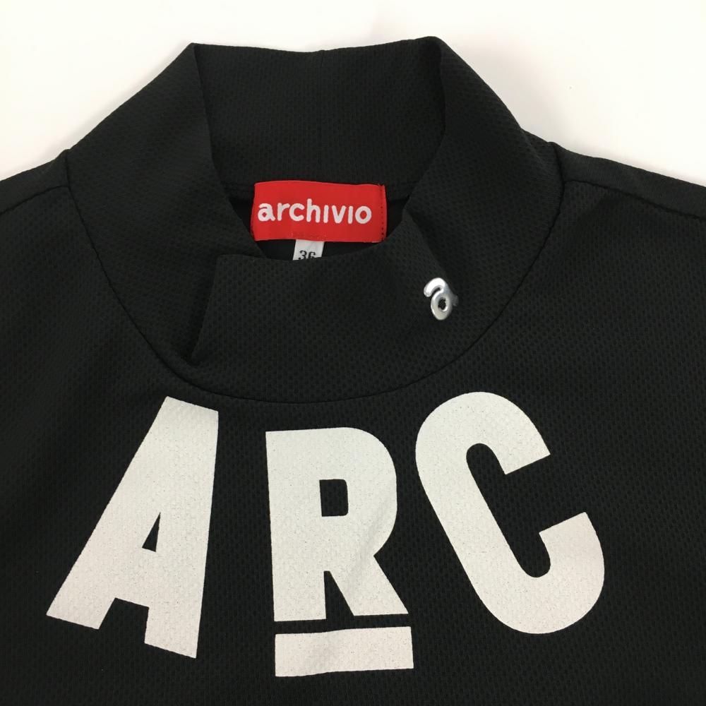 【美品】アルチビオ ノースリーブハイネックシャツ 黒×白 ビッグロゴ レディース 36(S) ゴルフウェア archivio