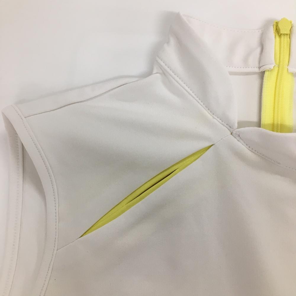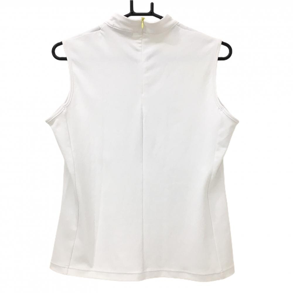 【超美品】ジュンアンドロペ ノースリーブハイネックシャツ 白×イエロー シルバーロゴ レディース L ゴルフウェア JUN&ROPE