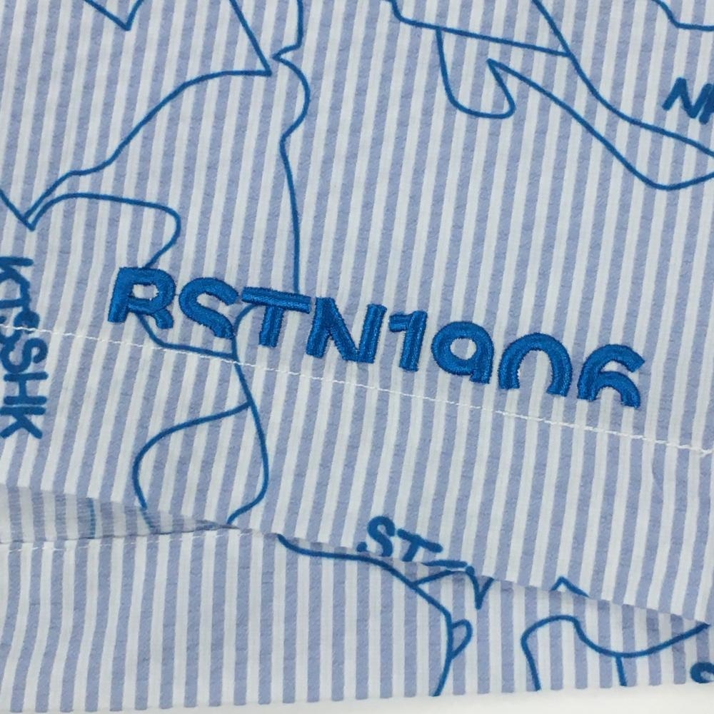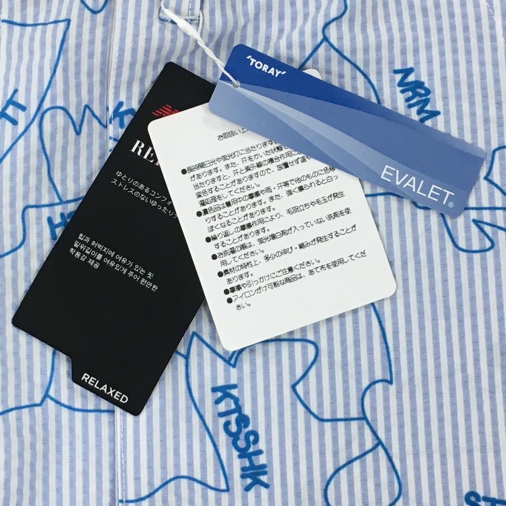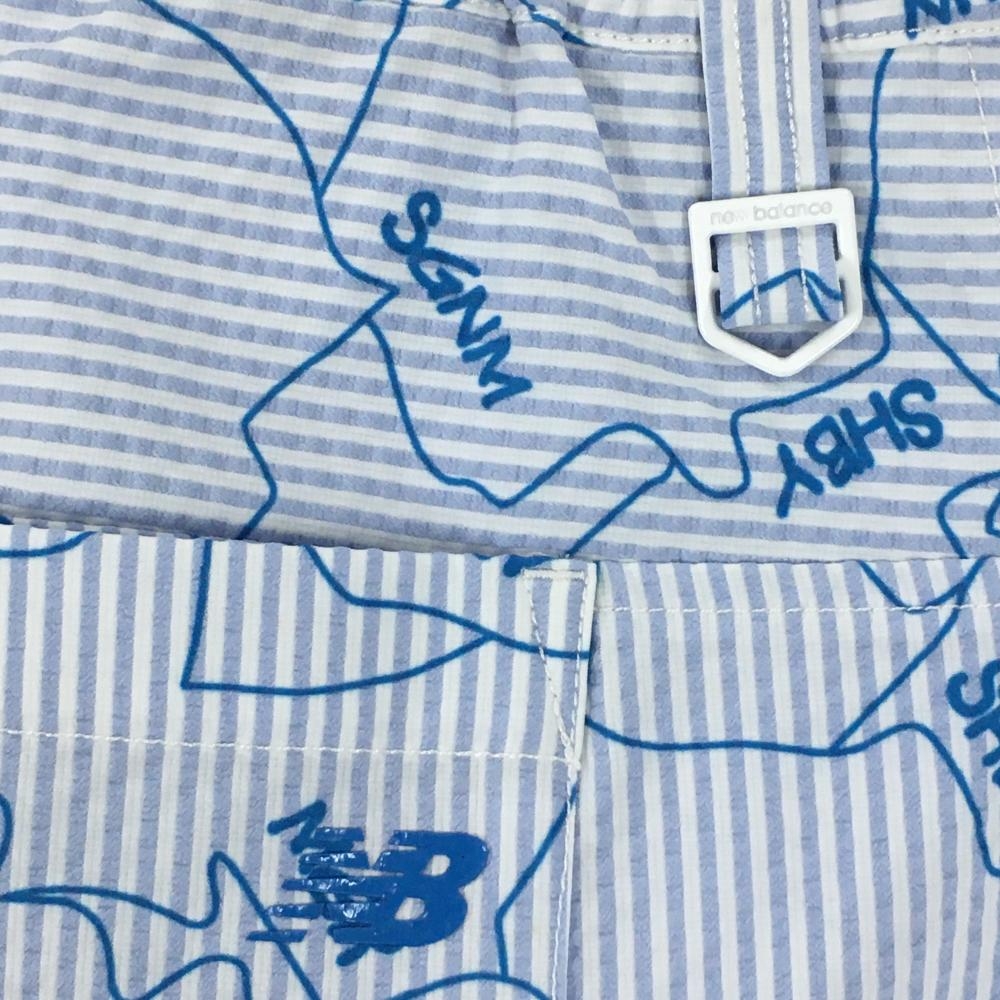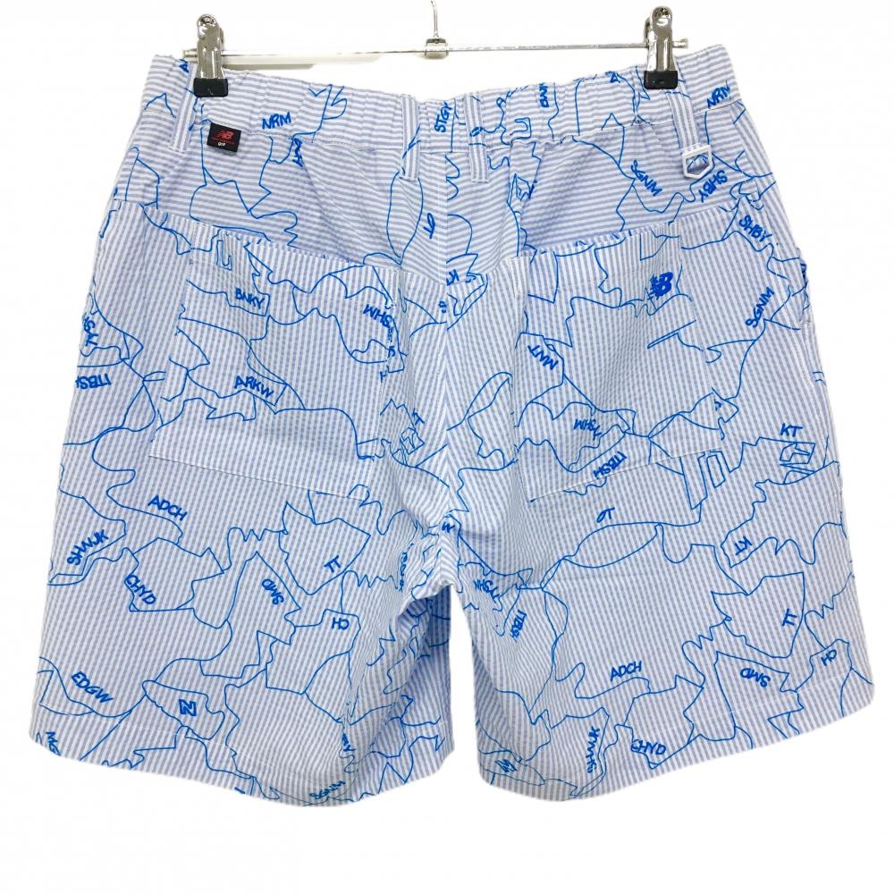 【新品】ニューバランスゴルフ ハーフパンツ 白×ライトブルー系 ストライプ 総柄 サッカー生地 メンズ 5(L) ゴルフウェア New Balance