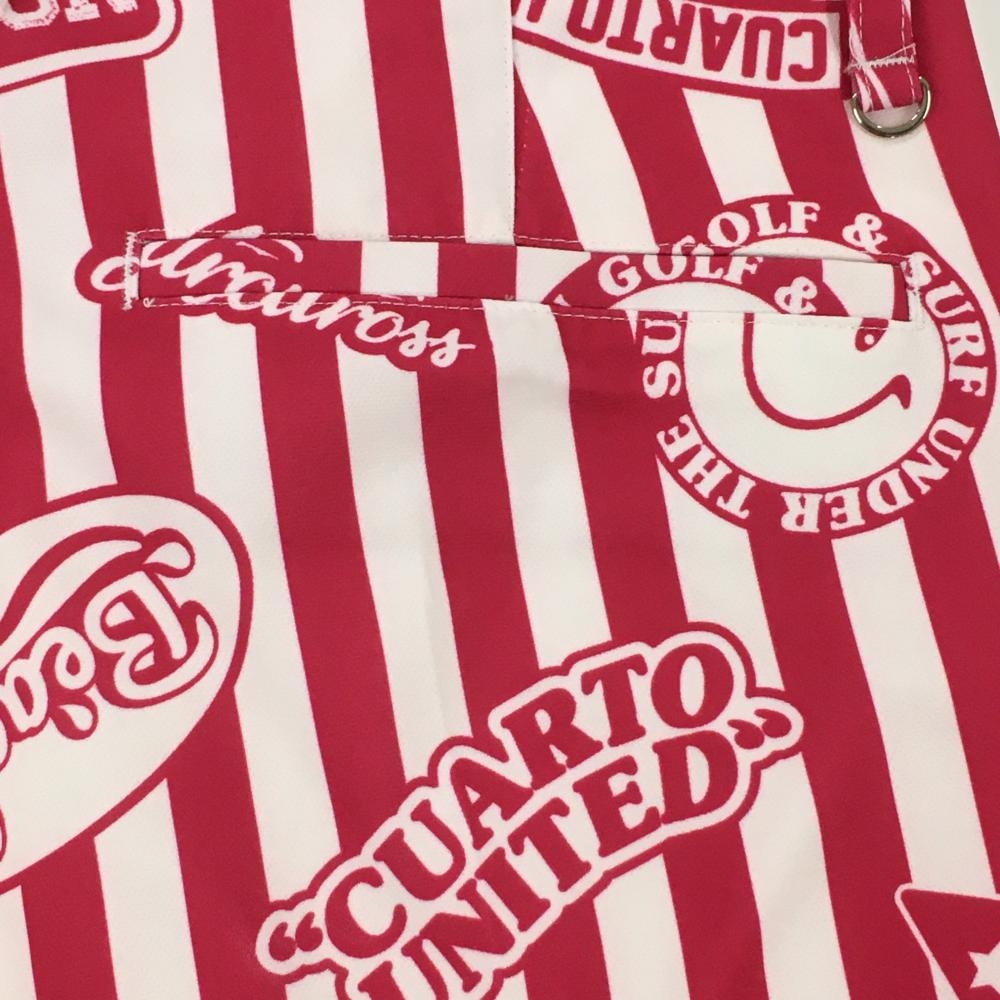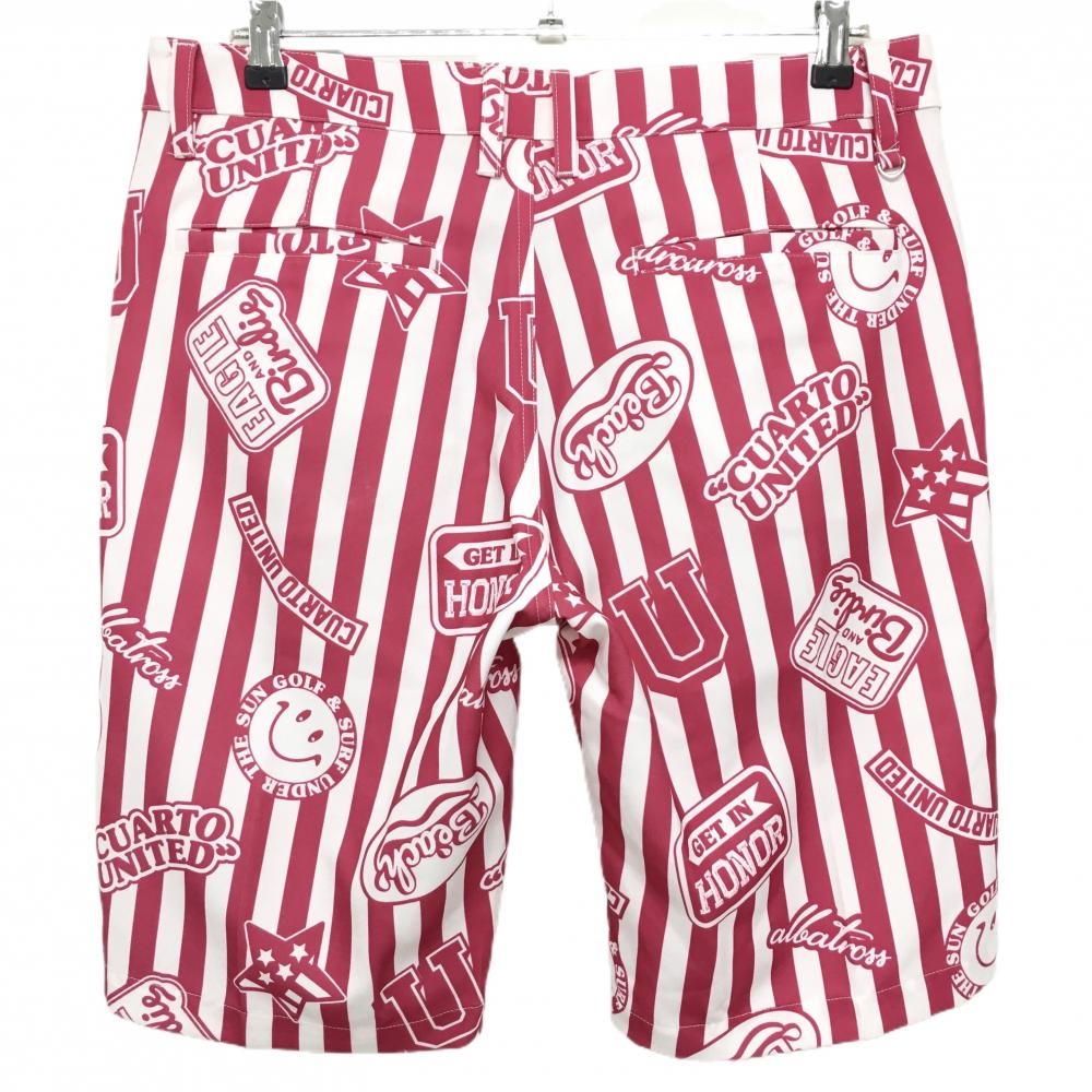【超美品】クアルトユナイテッド ハーフパンツ 白×ピンク ストライプ 総柄 スマイル メンズ L ゴルフウェア CUARTO UNITED