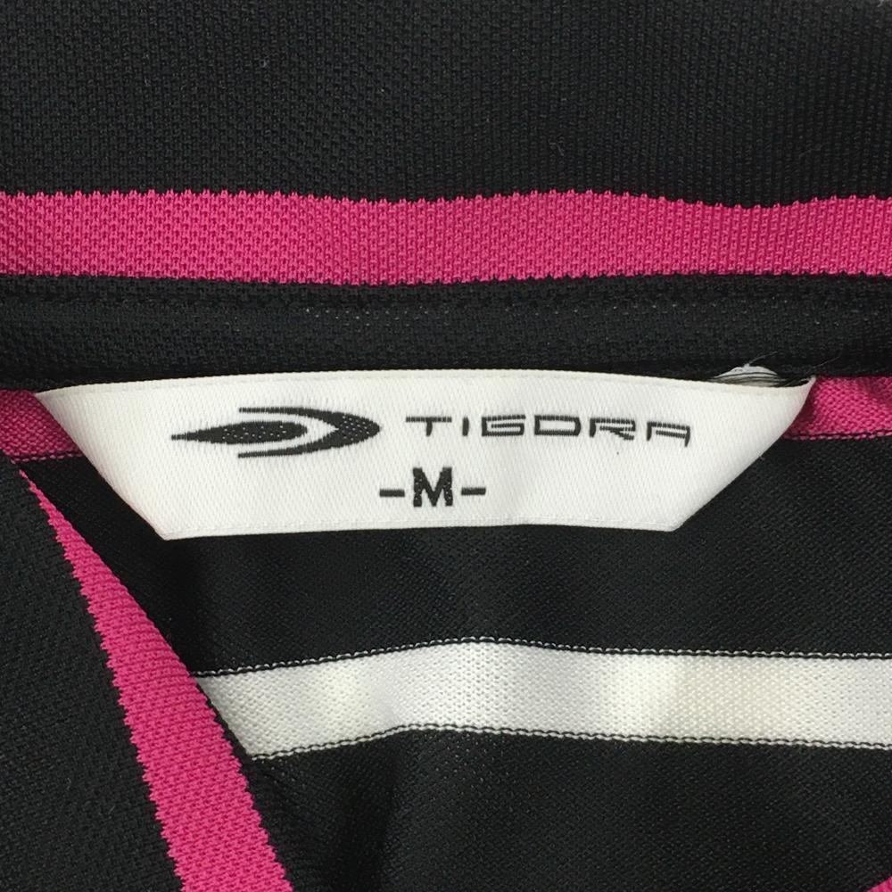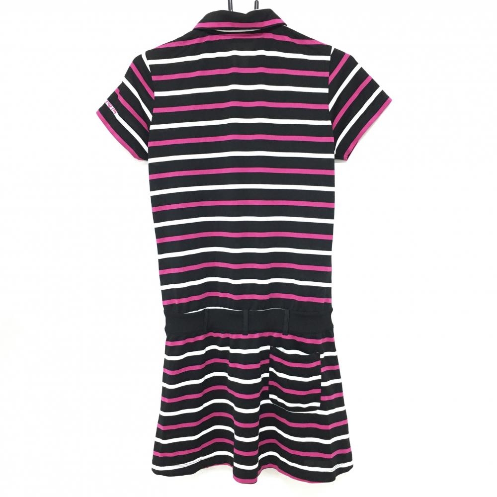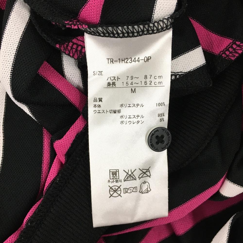 【美品】ティゴラ 半袖ワンピース 黒×白×ピンク ボーダー レディース M ゴルフウェア TIGORA