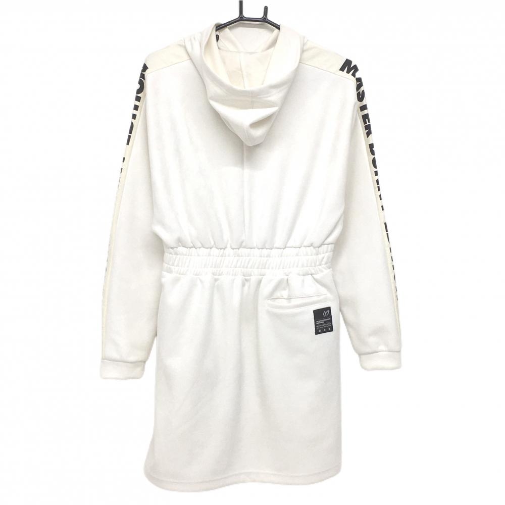 【美品】マスターバニー フード付き長袖ワンピース 白×黒 表微起毛 ロゴライン レディース 2(L) ゴルフウェア MASTER BUNNY EDITION