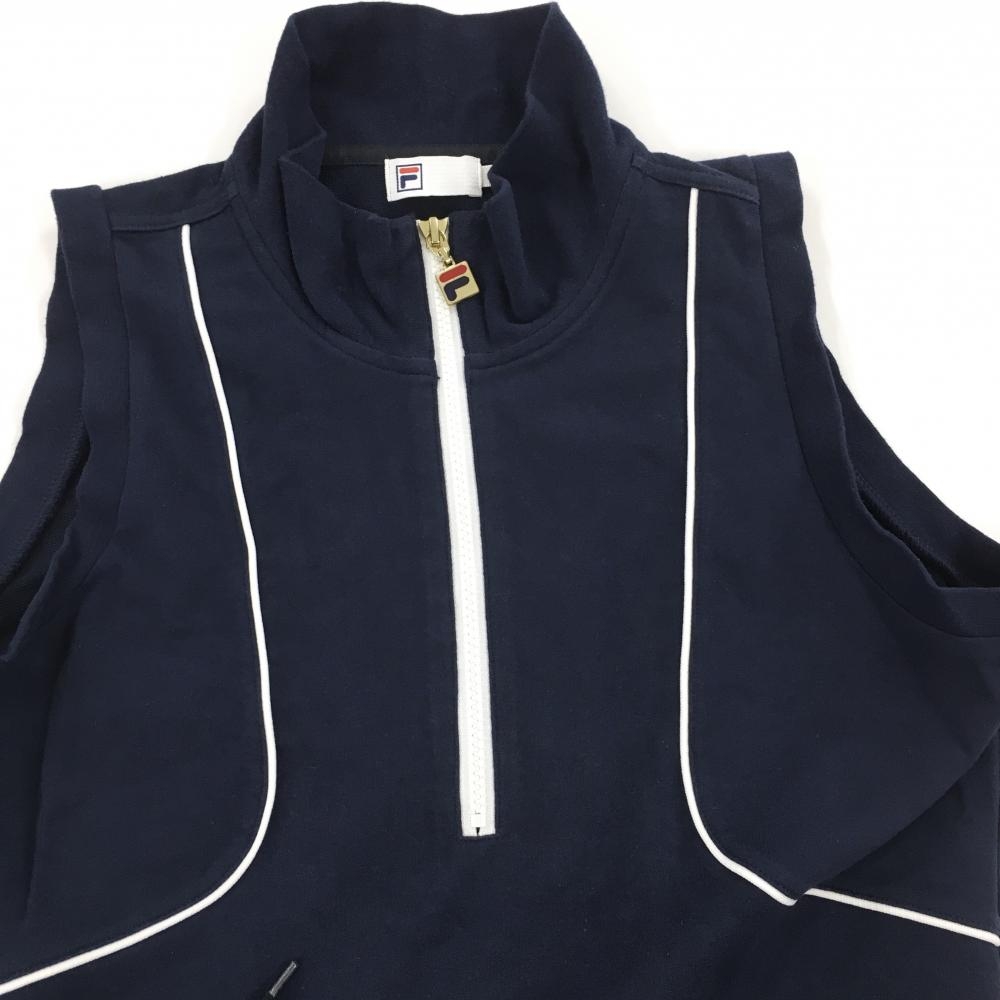 フィラ ノースリーブハイネックワンピース ネイビー×白 ハーフジップ レディース M ゴルフウェア FILA GOLF