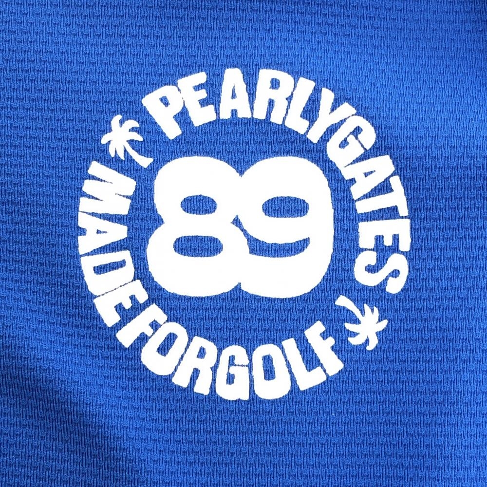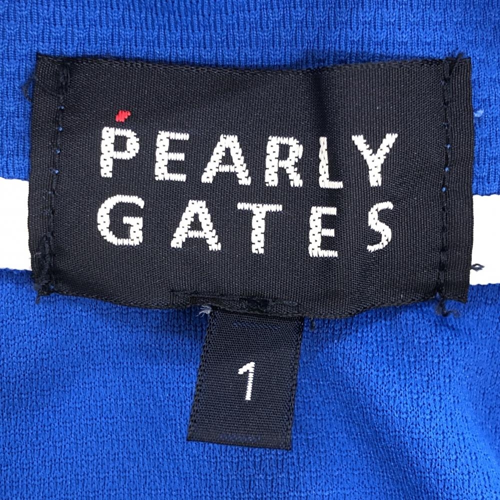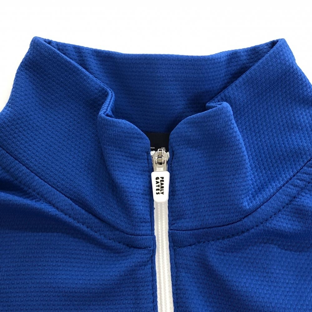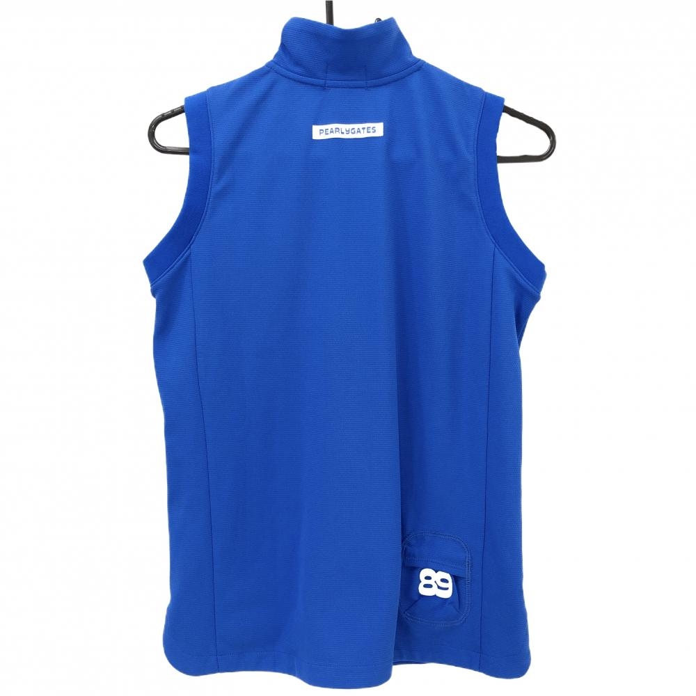 【超美品】パーリーゲイツ ノースリーブハイネックシャツ ブルー ハーフジップ ロゴ白 レディース 1(M) ゴルフウェア PEARLY GATES