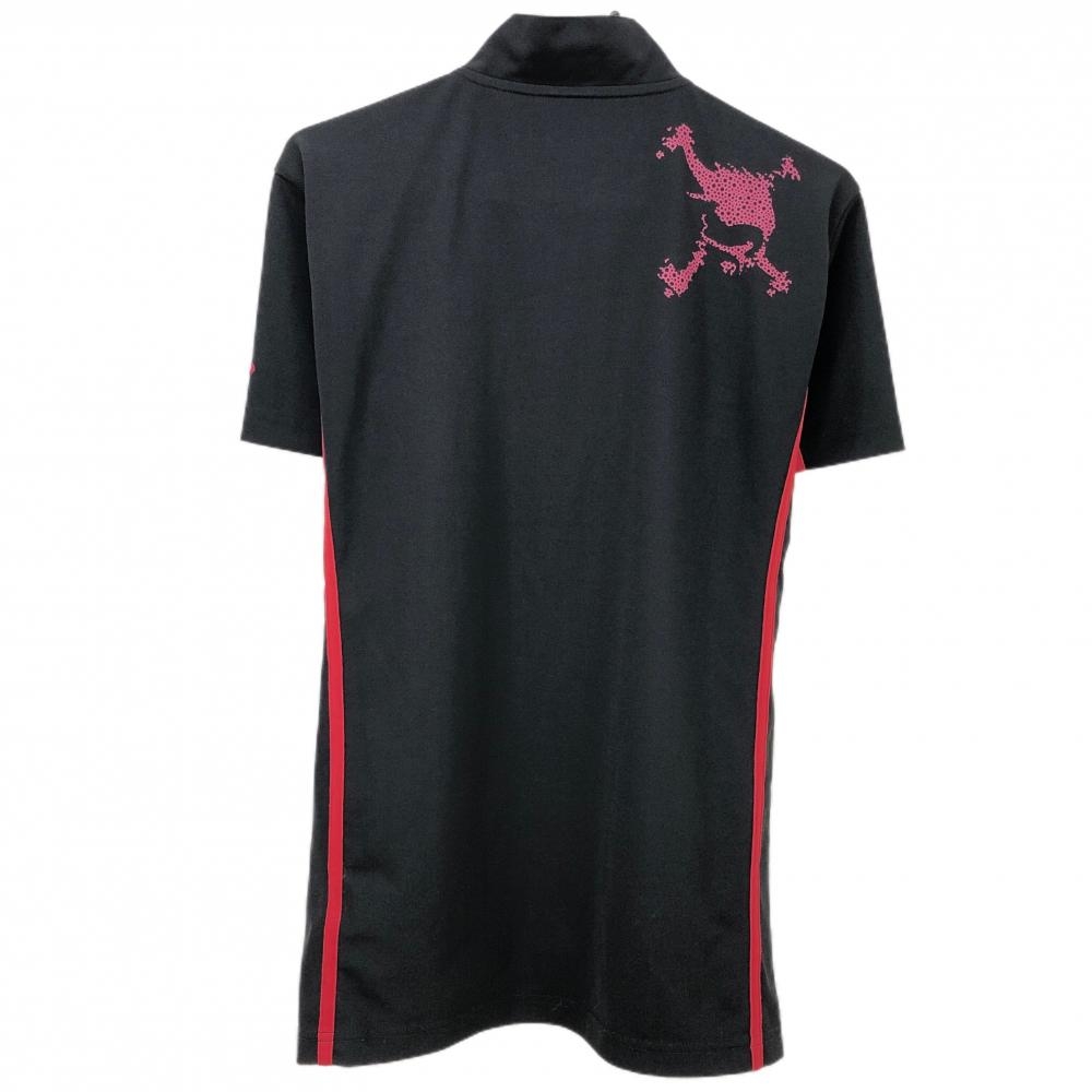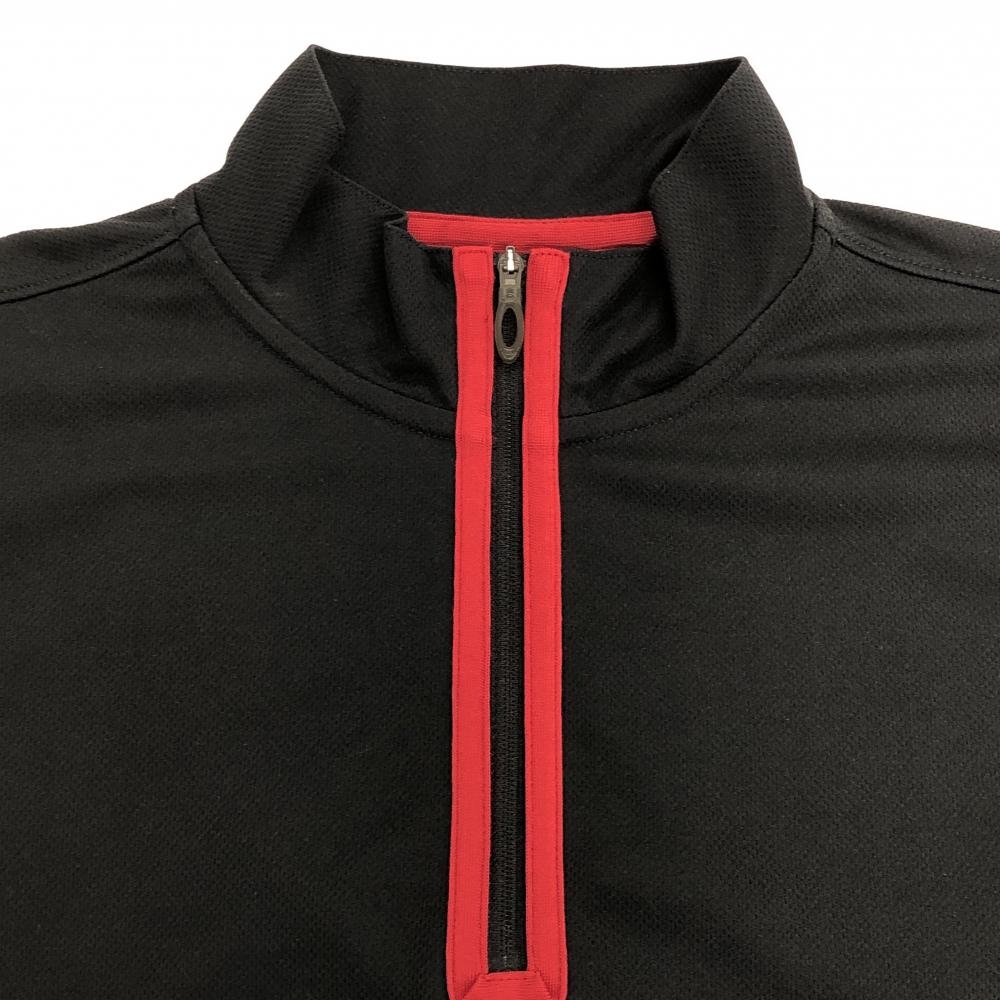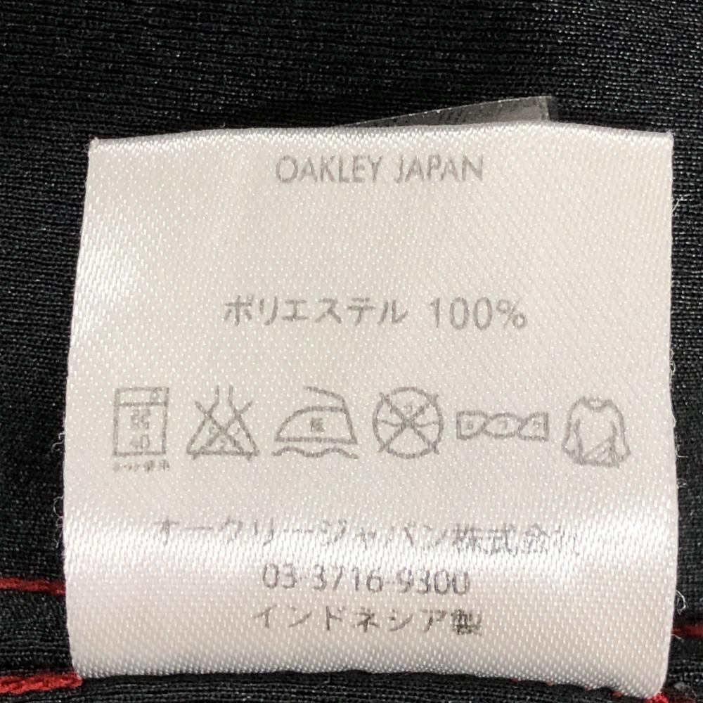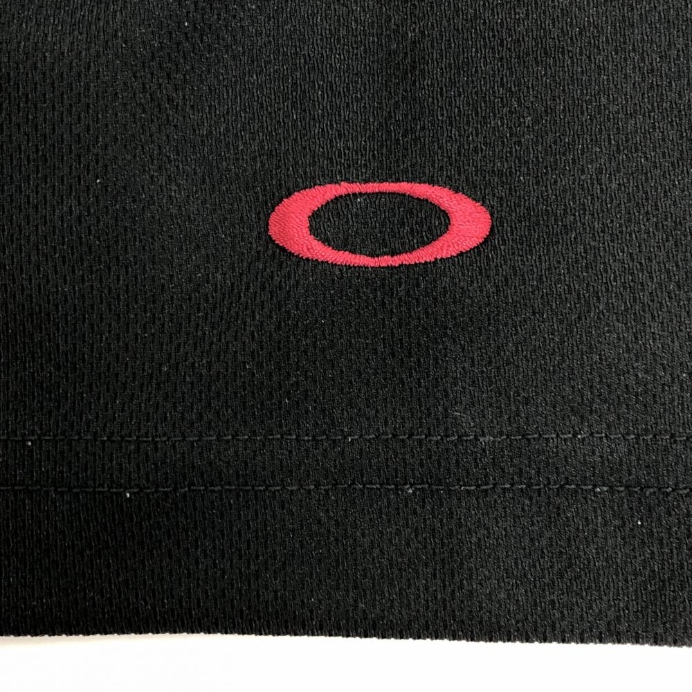 【美品】オークリー 半袖ハイネックシャツ 黒×レッド ハーフジップ ライン メンズ M ゴルフウェア Oakley