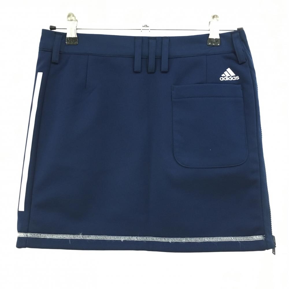 【美品】アディダス リバーシブルスカート ネイビー×シルバー サイド3ライン レディース M ゴルフウェア adidas