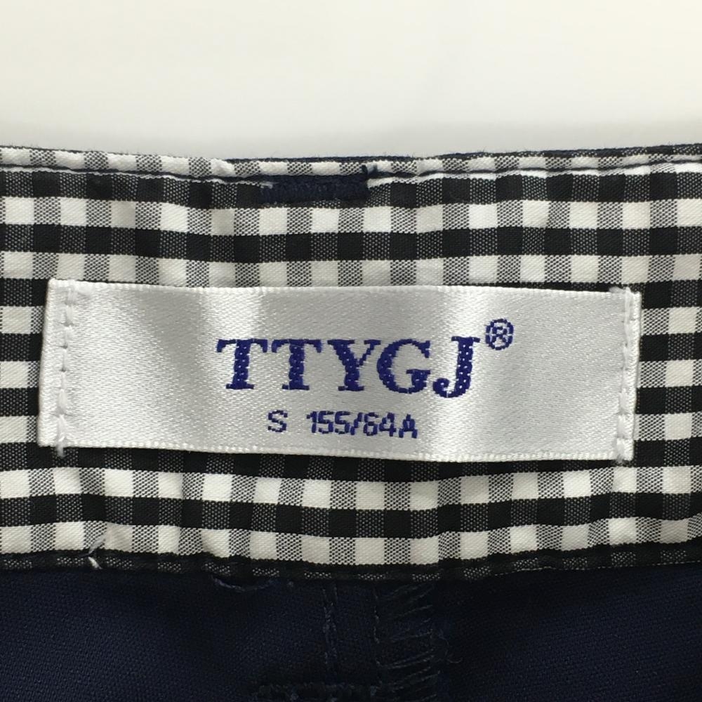 【美品】ティーティーワイジージェイ ハーフパンツ ネイビー×白 ロゴ刺しゅう ストレッチ レディース S ゴルフウェア TTYGJ