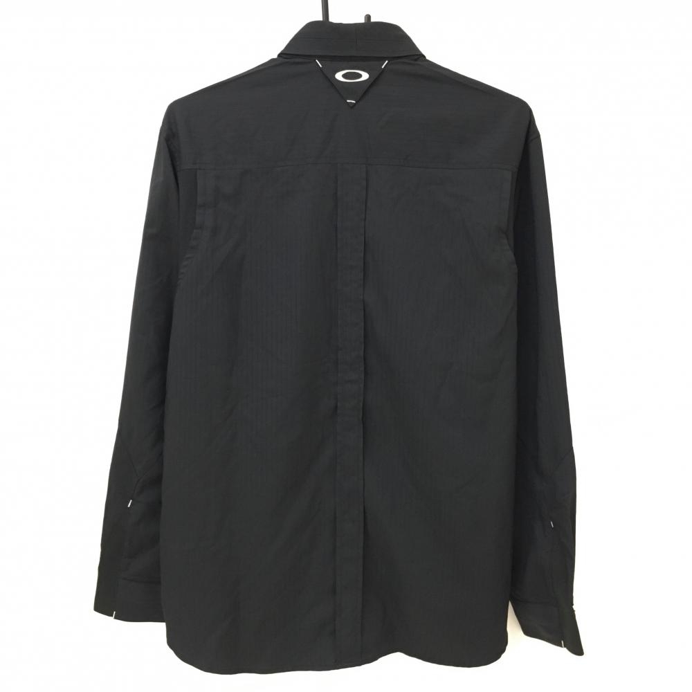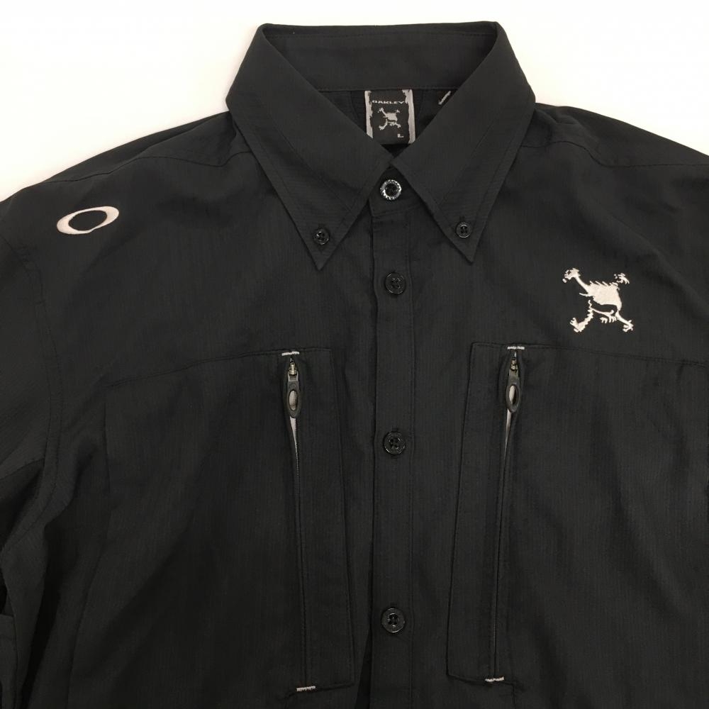 【超美品】オークリー 長袖シャツ 黒 地模様 ボタンダウン 胸ポケット メンズ L ゴルフウェア Oakley