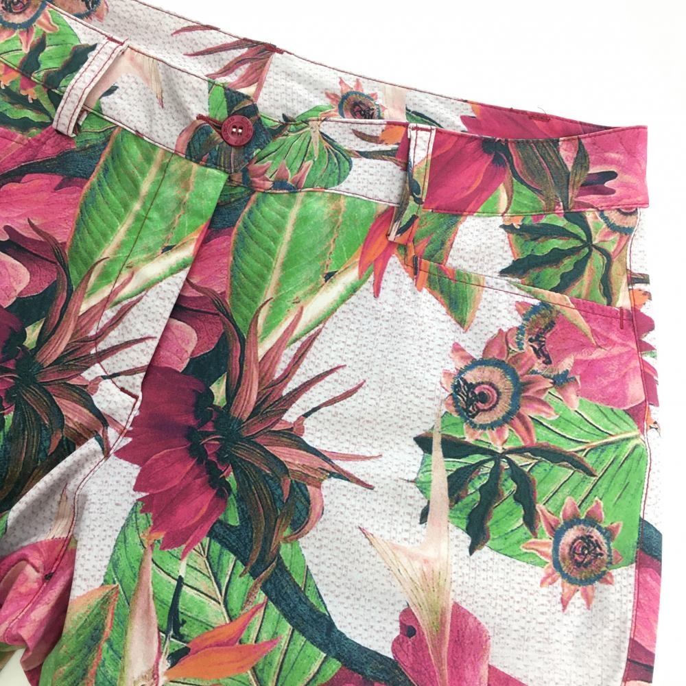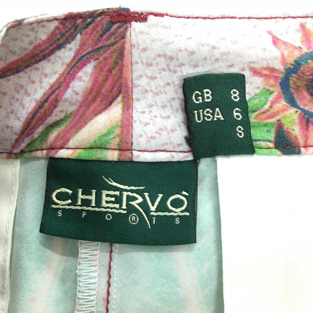 【超美品】シェルボ ハーフパンツ ピンク×グリーン ボタニカル柄 ストレッチ レディース S ゴルフウェア CHERVO