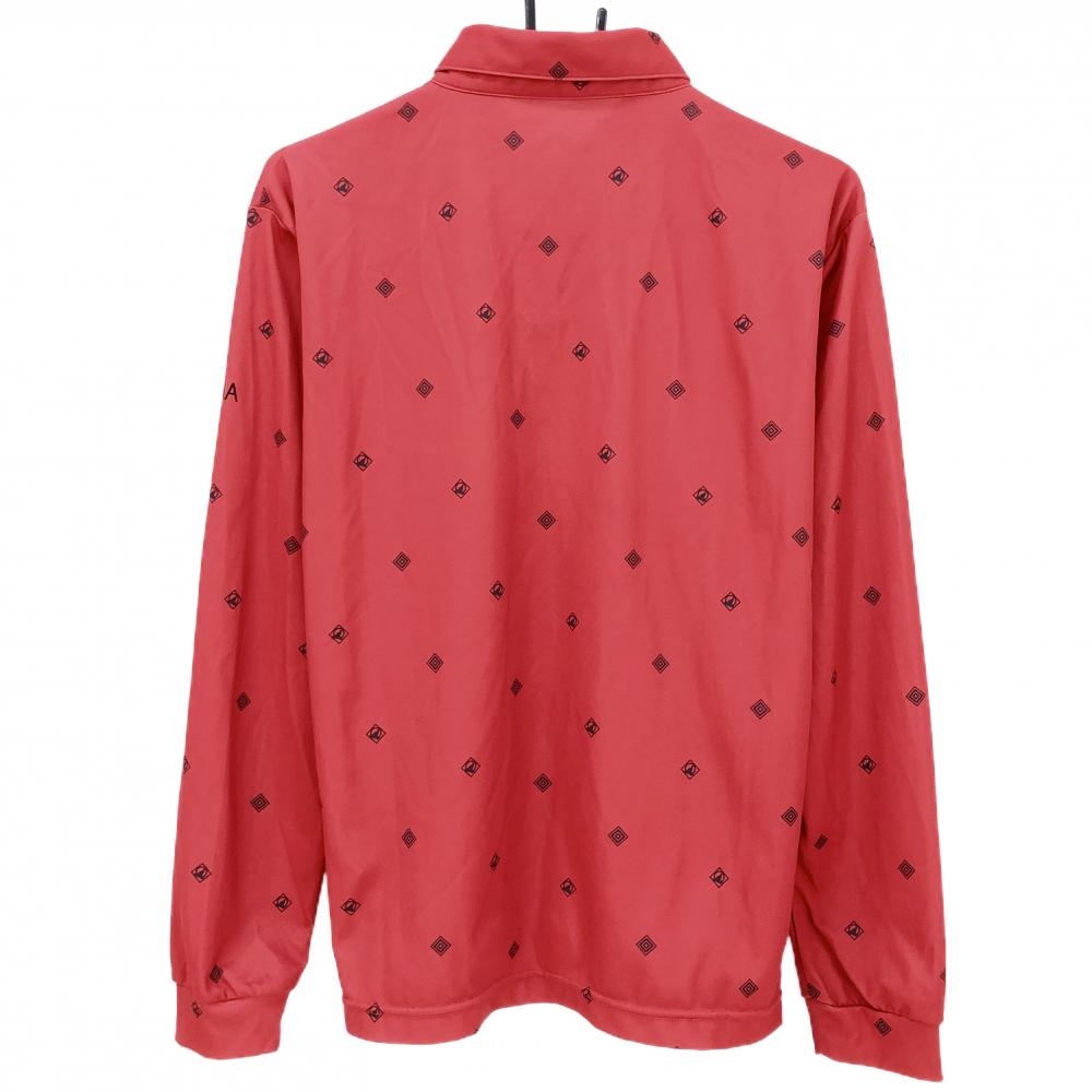 【美品】ホンマ 長袖ポロシャツ レッド×黒 ロゴ総柄 メンズ M ゴルフウェア HONMA
