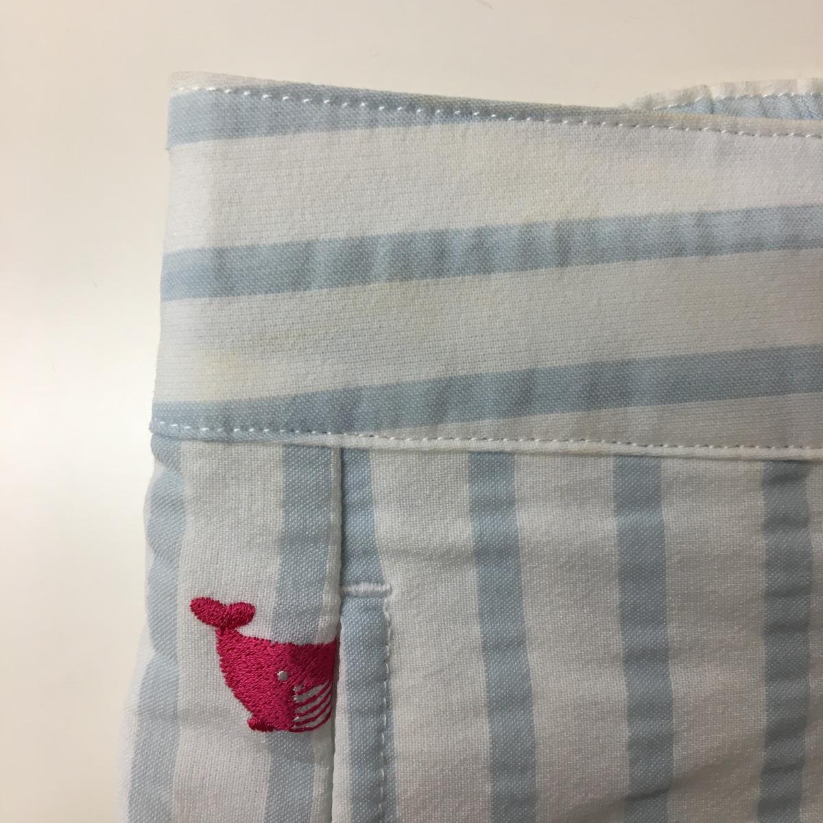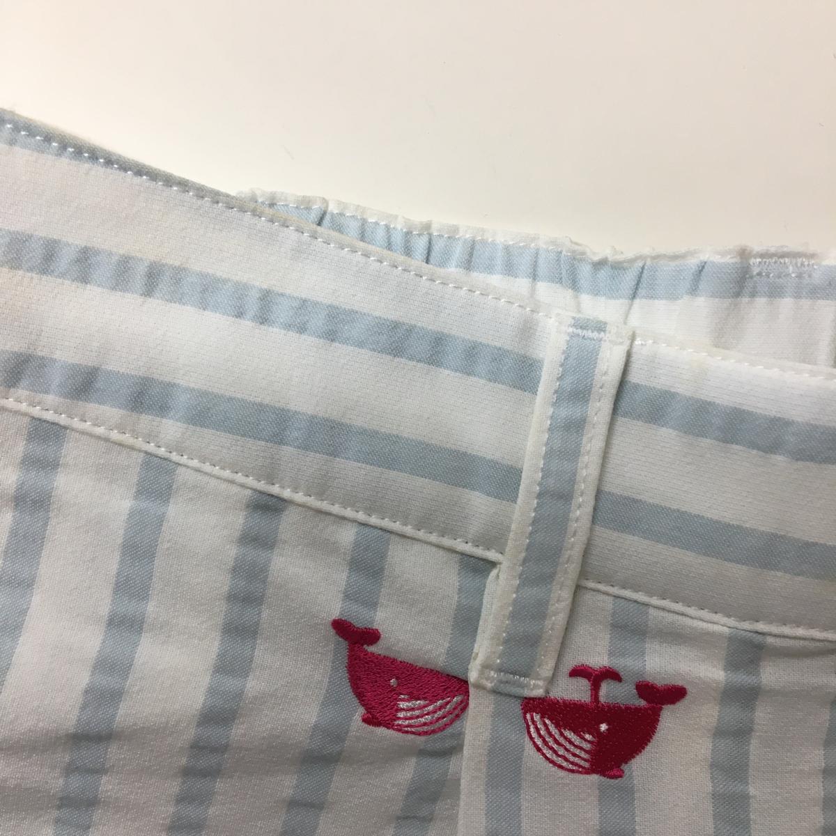 【新品】パーリーゲイツ キュロットスカート 白×ライトブルー系 クジラ柄 ストライプ レディース 0(S) ゴルフウェア PEARLY GATES