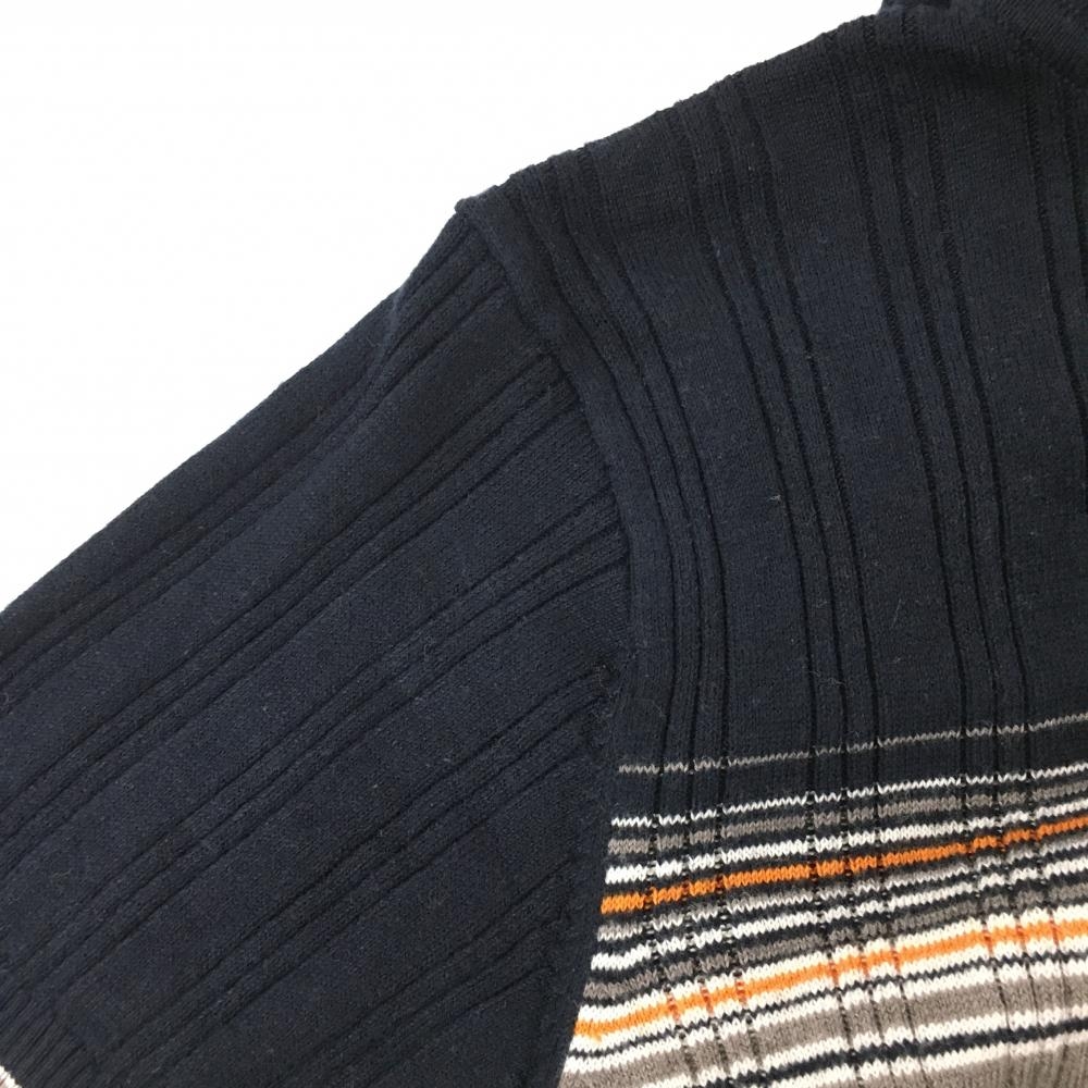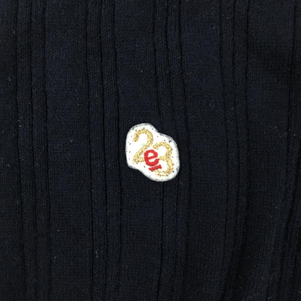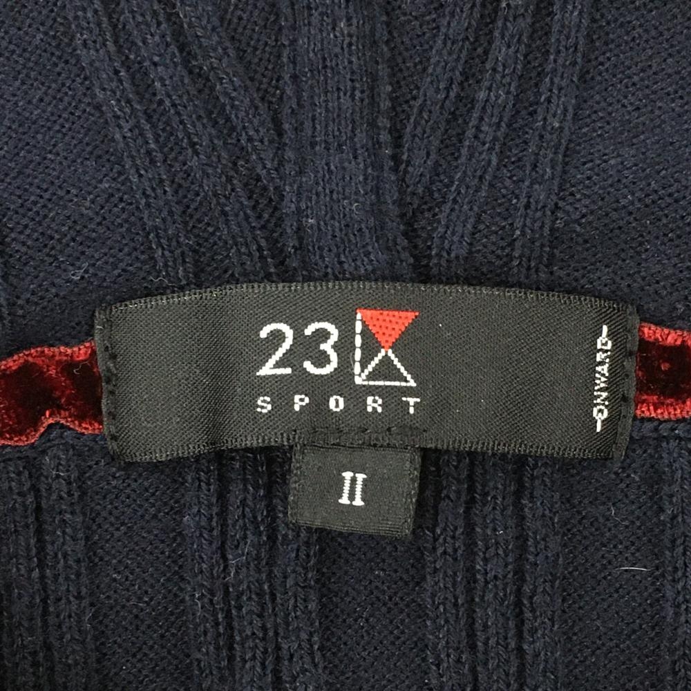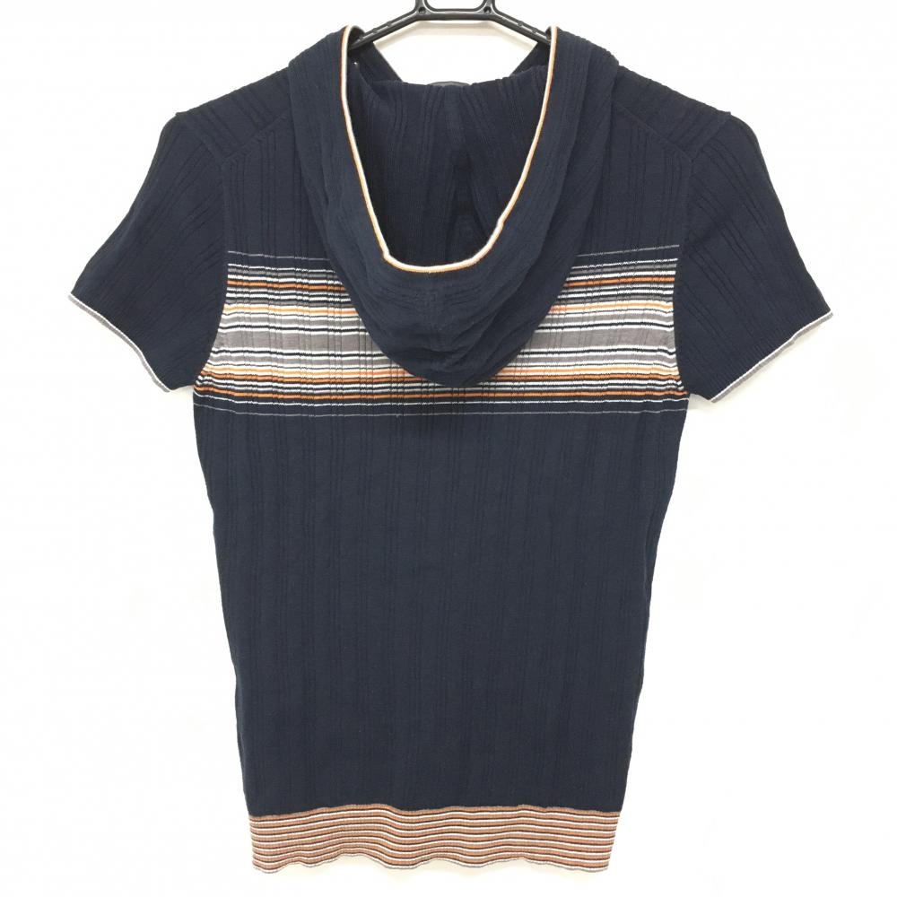 【美品】23区スポーツ フード付き半袖セーター ネイビー×オレンジ×グレー パーカー ニット レディース II(L) ゴルフウェア 23区
