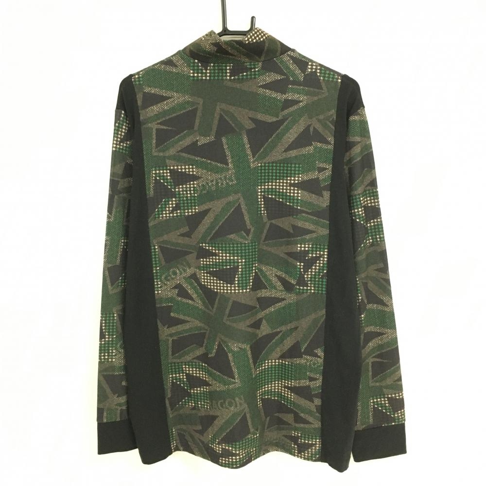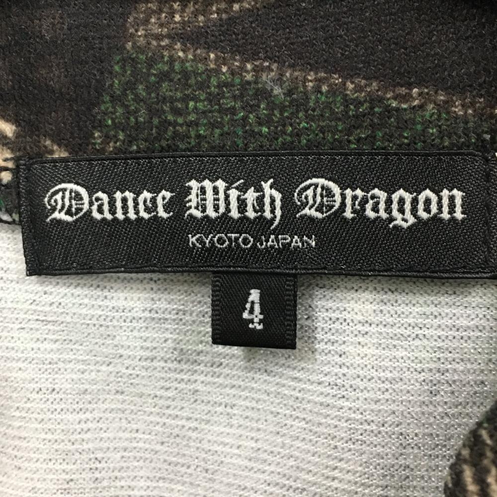 【超美品】ダンスウィズドラゴン 長袖ハイネックシャツ ダークブラウン×グリーン 総柄 メンズ 4(XL) ゴルフウェア Dance With Dragon