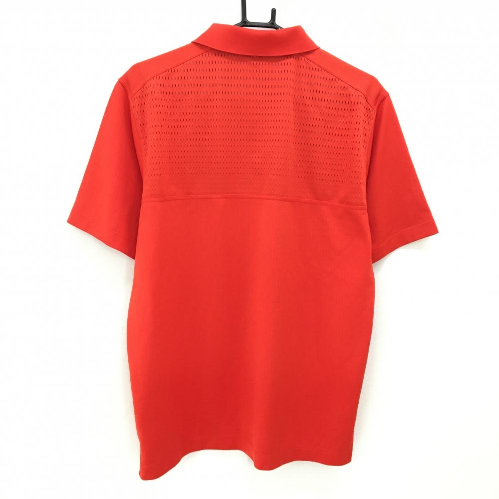 【美品】ナイキゴルフ 半袖ポロシャツ レッド 上部メッシュ調 ロゴプリント メンズ XL ゴルフウェア NIKE