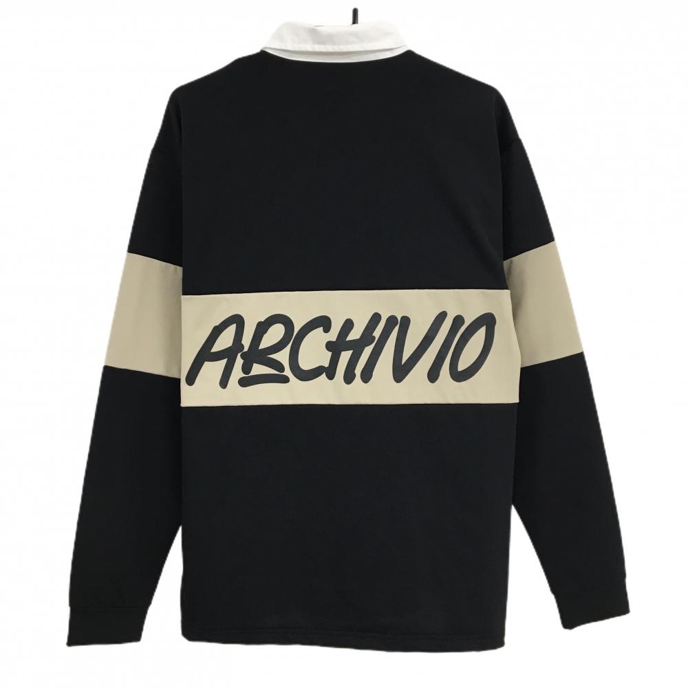 アルチビオ 長袖ポロシャツ 黒×ベージュ 胸ライン・ロゴ 肥野竜也コラボ メンズ 48(L) ゴルフウェア archivio