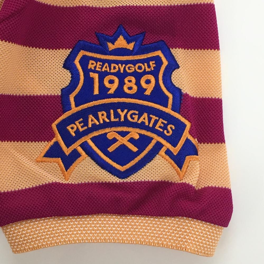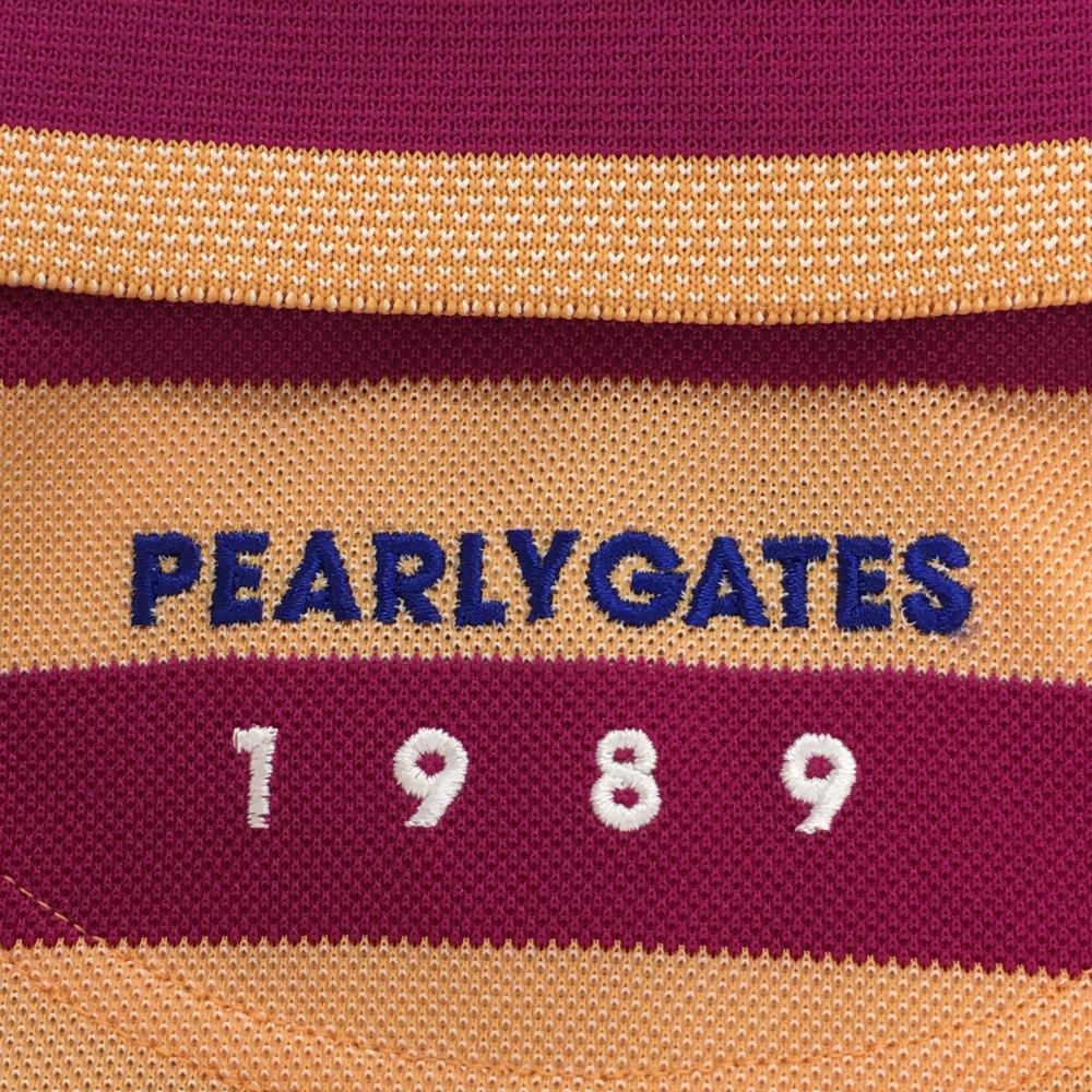 【新品】パーリーゲイツ 半袖ポロシャツ ライトオレンジ×パープル ボーダー ロゴ刺しゅう レディース 0(S) ゴルフウェア PEARLY GATES