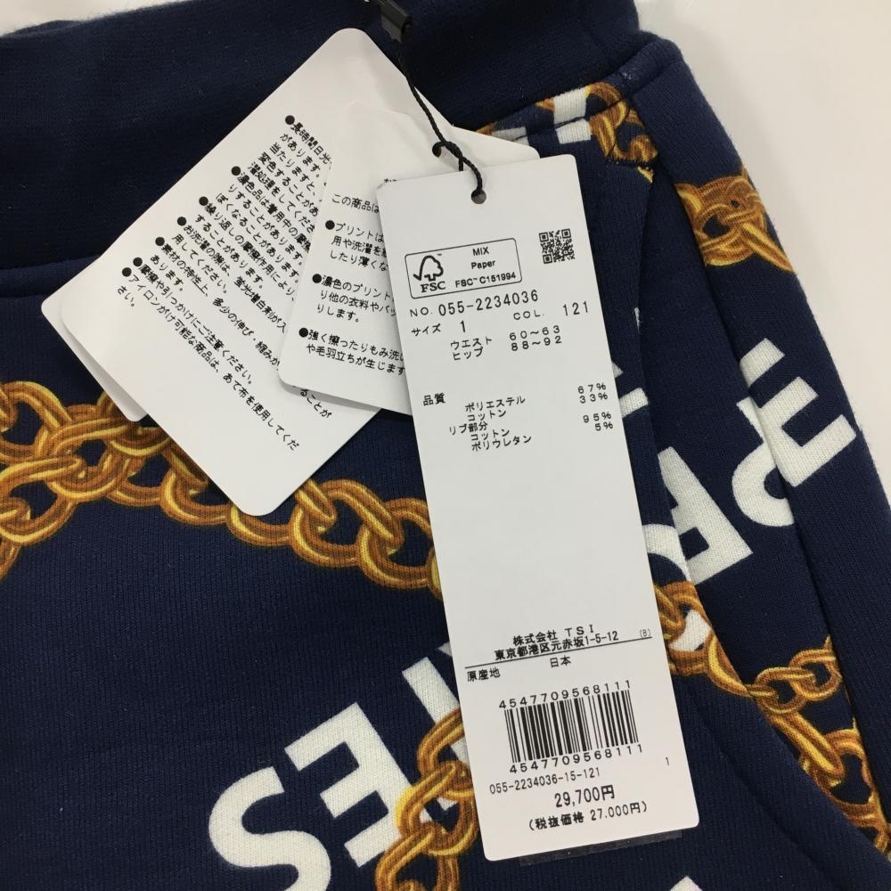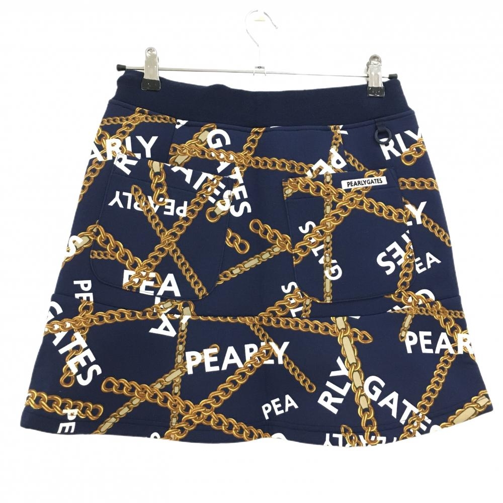 【新品】パーリーゲイツ スカート ネイビー×ゴールド チェーン柄 ウエストゴム 調節紐 レディース 1(M) ゴルフウェア PEARLY GATES