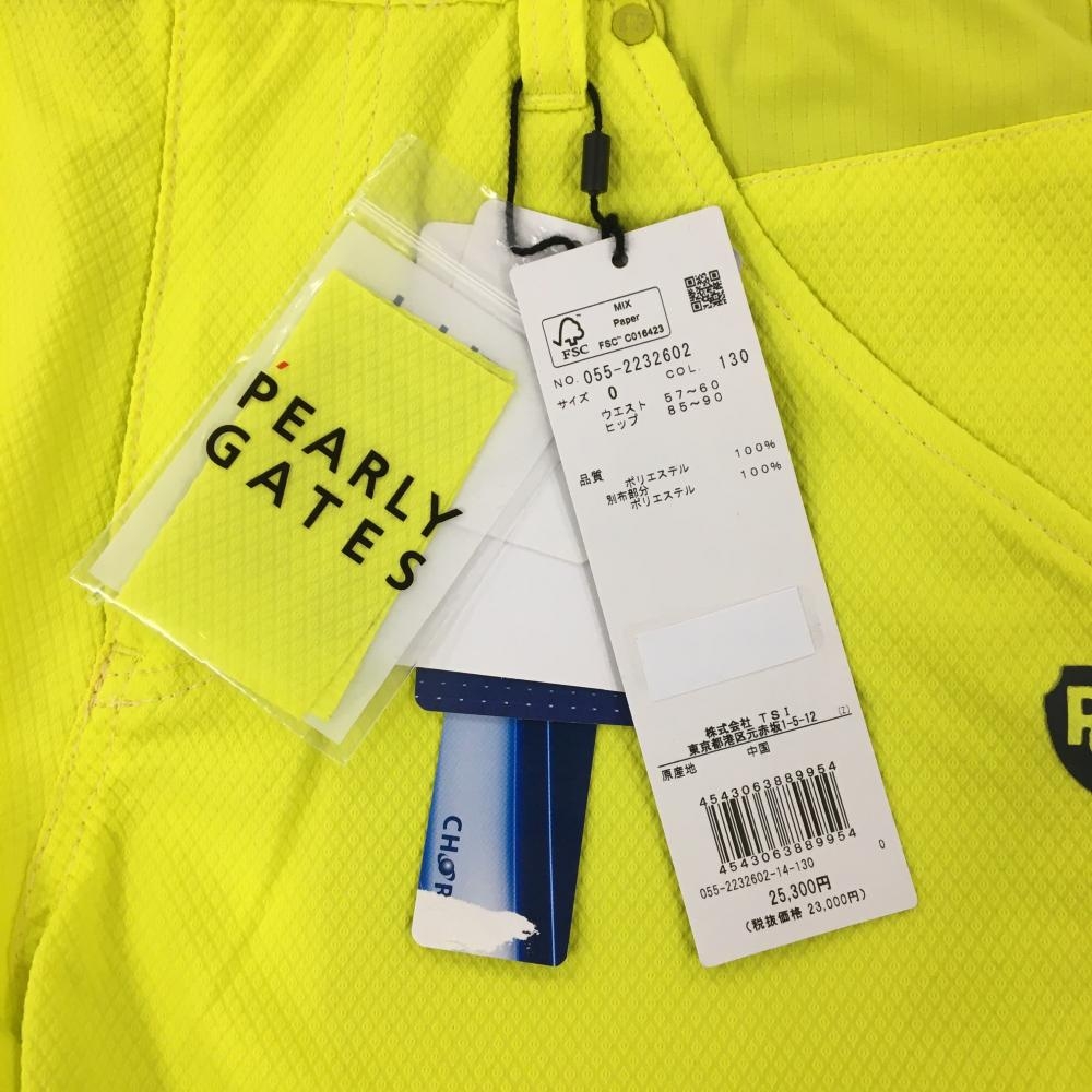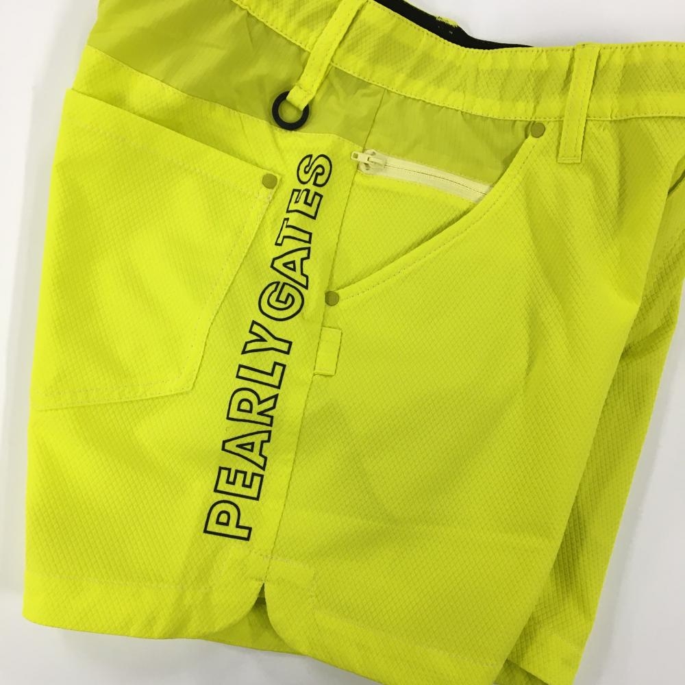 【新品】パーリーゲイツ ショートパンツ イエロー×ネイビー ダイヤ柄織生地 サイドロゴ レディース 0(S) ゴルフウェア PEARLY GATES