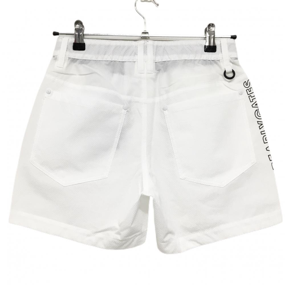 【新品】パーリーゲイツ ショートパンツ 白×ネイビー ダイヤ柄織生地 サイドロゴ レディース 0(S) ゴルフウェア PEARLY GATES