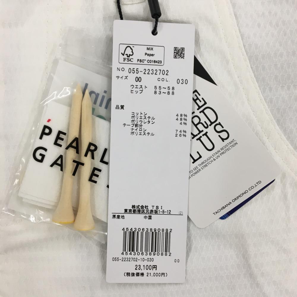 【新品】パーリーゲイツ ショートパンツ 白×グレー 総柄織生地 ウエストロゴライン レディース 00(XS) ゴルフウェア PEARLY GATES