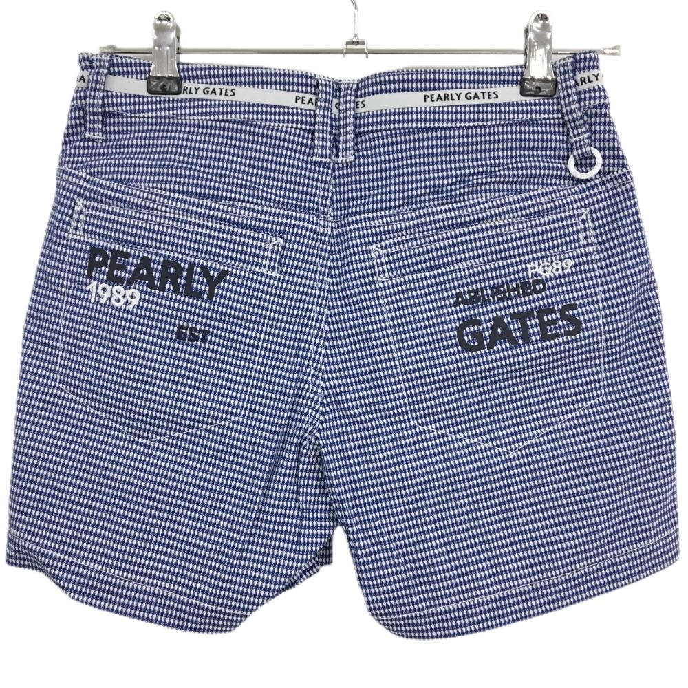 【新品】パーリーゲイツ ショートパンツ 白×ブルー 総柄織生地 ウエストロゴライン レディース 0(S) ゴルフウェア PEARLY GATES
