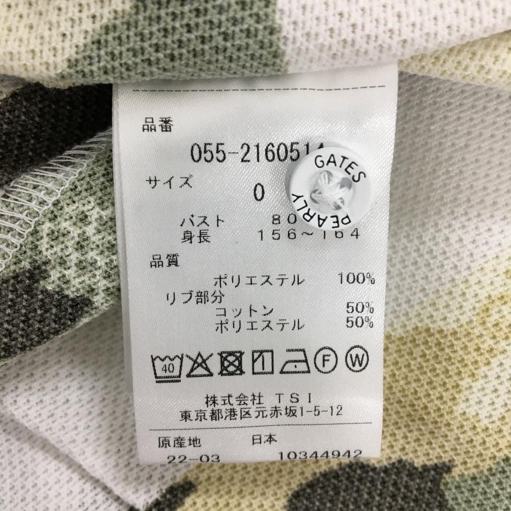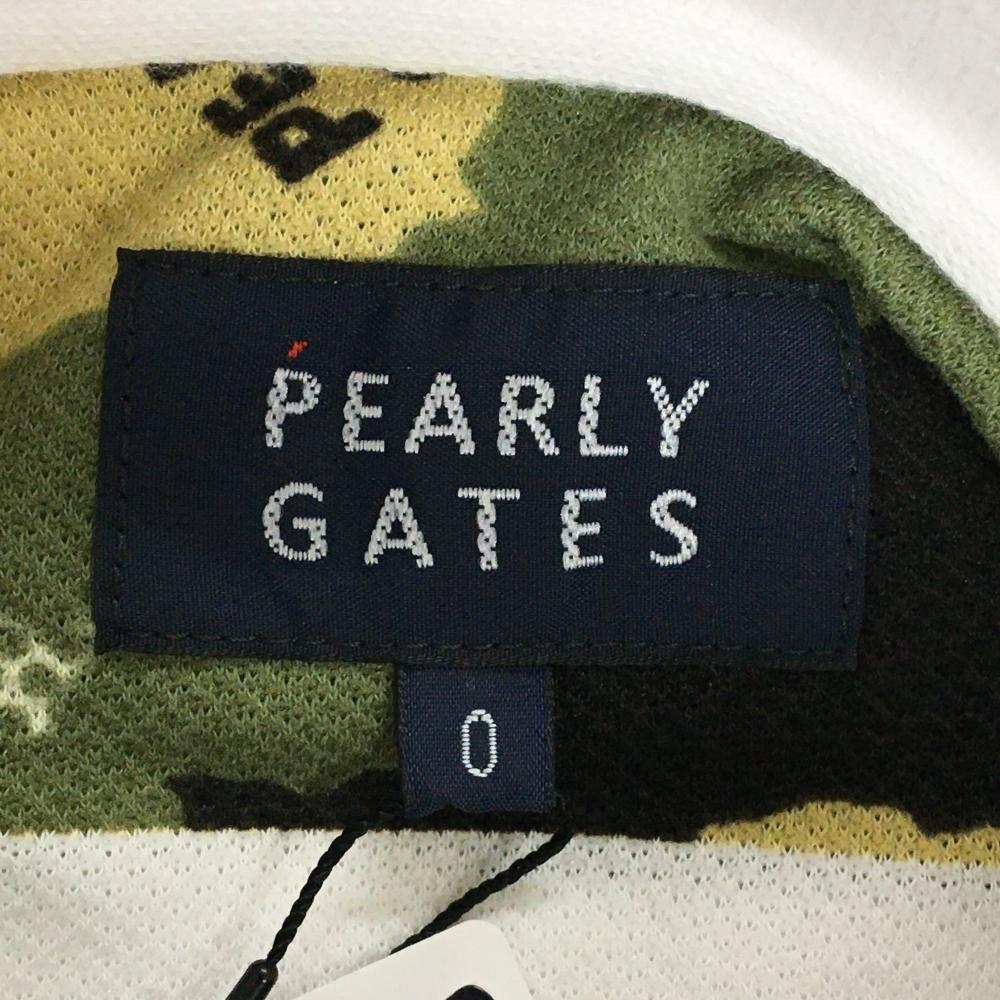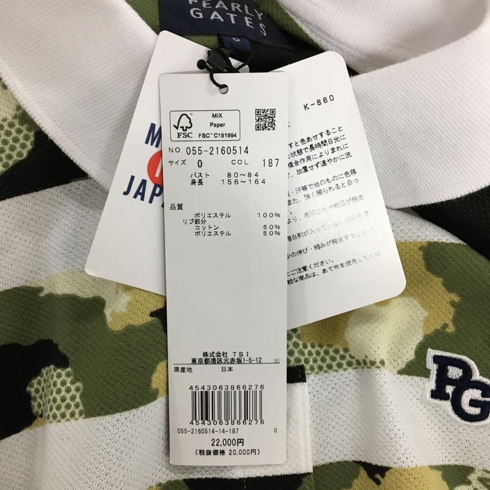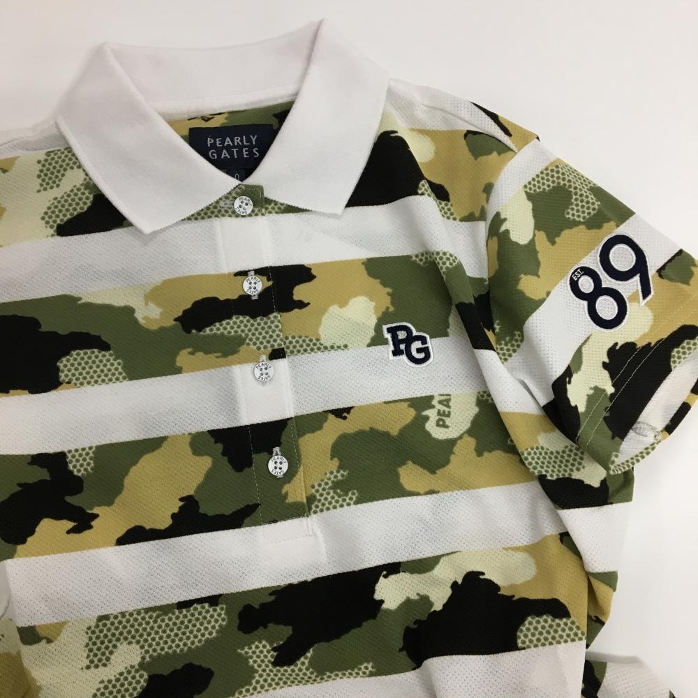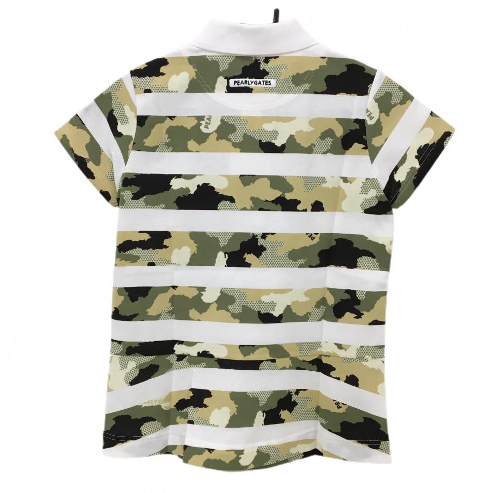 【新品】パーリーゲイツ 半袖ポロシャツ 白×カーキ系 ボーダー 迷彩 カモフラ ロゴ刺しゅう レディース 0(S) ゴルフウェア PEARLY GATES
